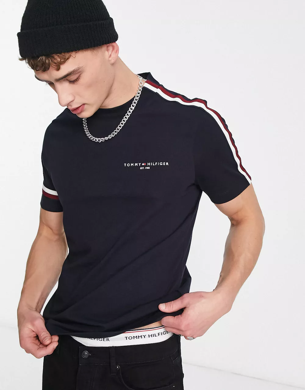- Tommy Hilfiger stripe short sleeve t-shirt in black