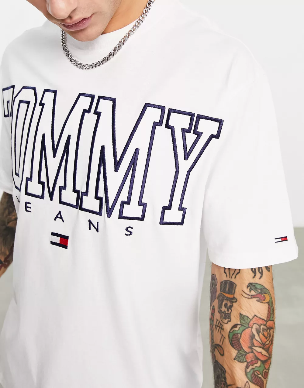 - Tommy Jeans ASOS exclusive cotton heritage capsule logo front t-shirt skate fit in white