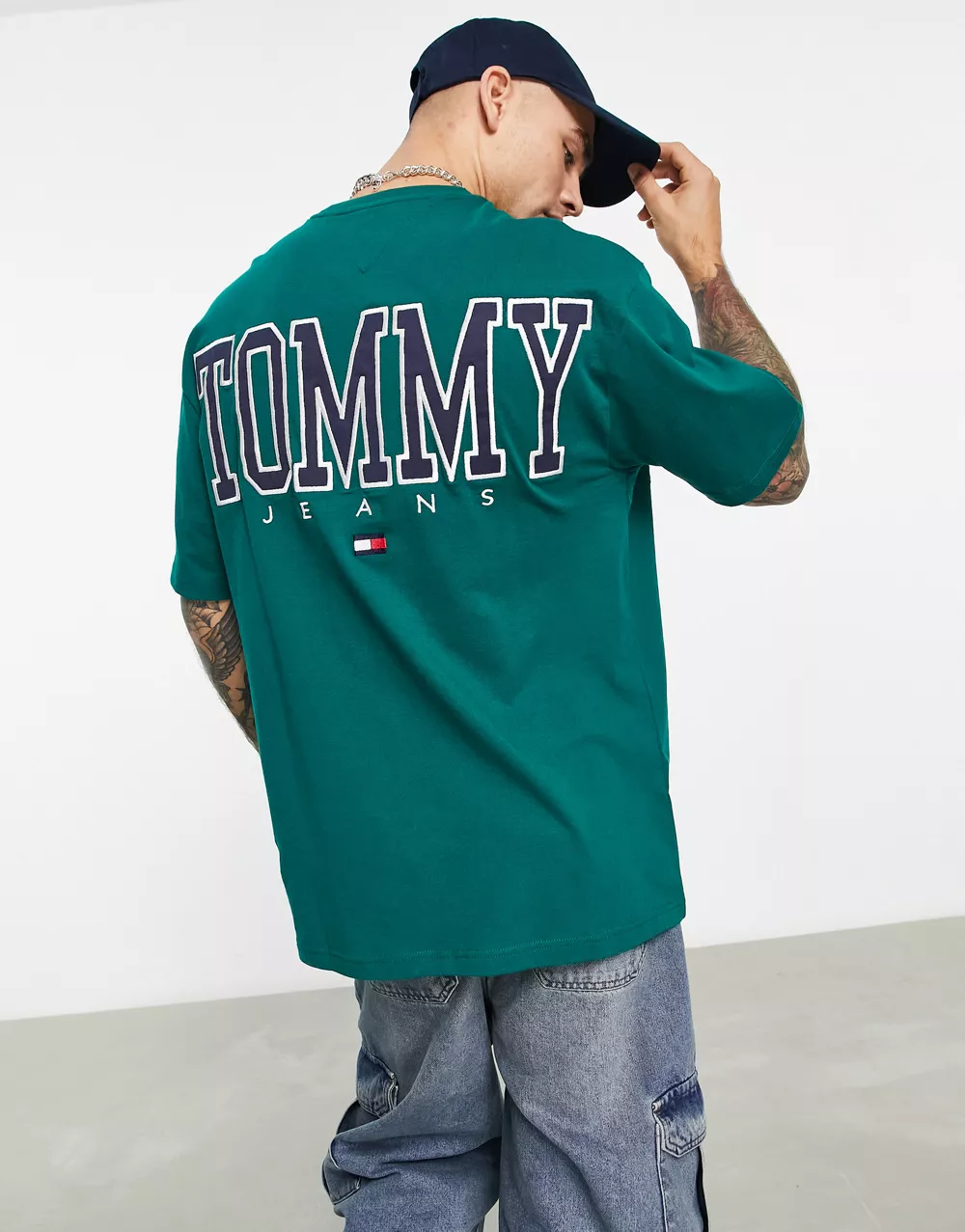 - Tommy Jeans ASOS exclusive heritage capsule back logo t-shirt skate fit in mid green