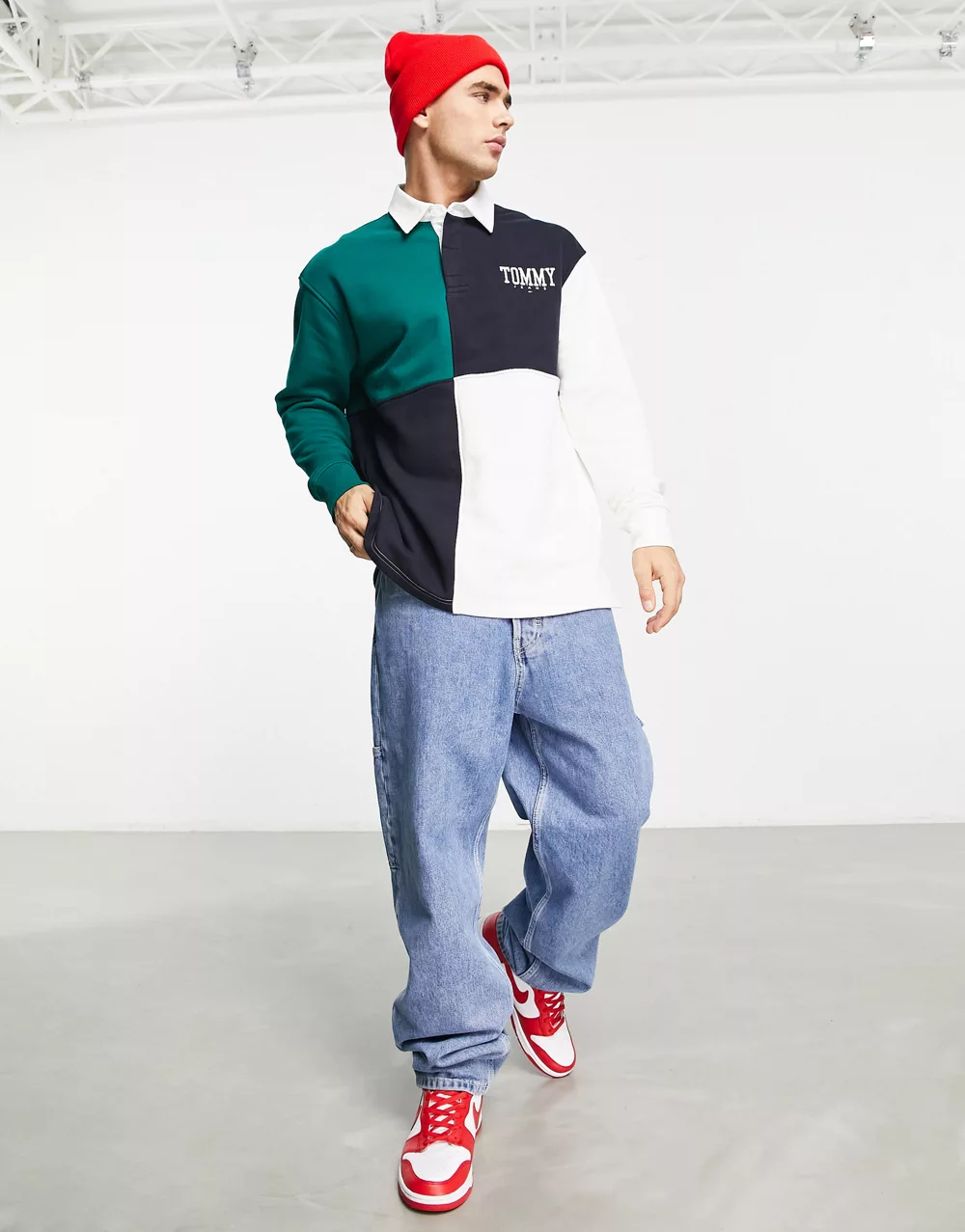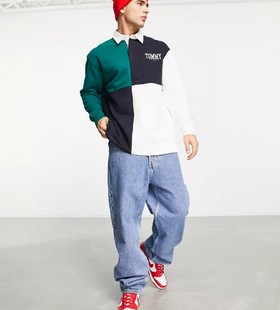 - Tommy Jeans ASOS exclusive heritage capsule colourblock rugby polo skater fit in navy