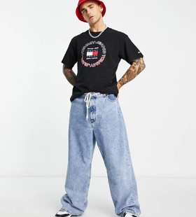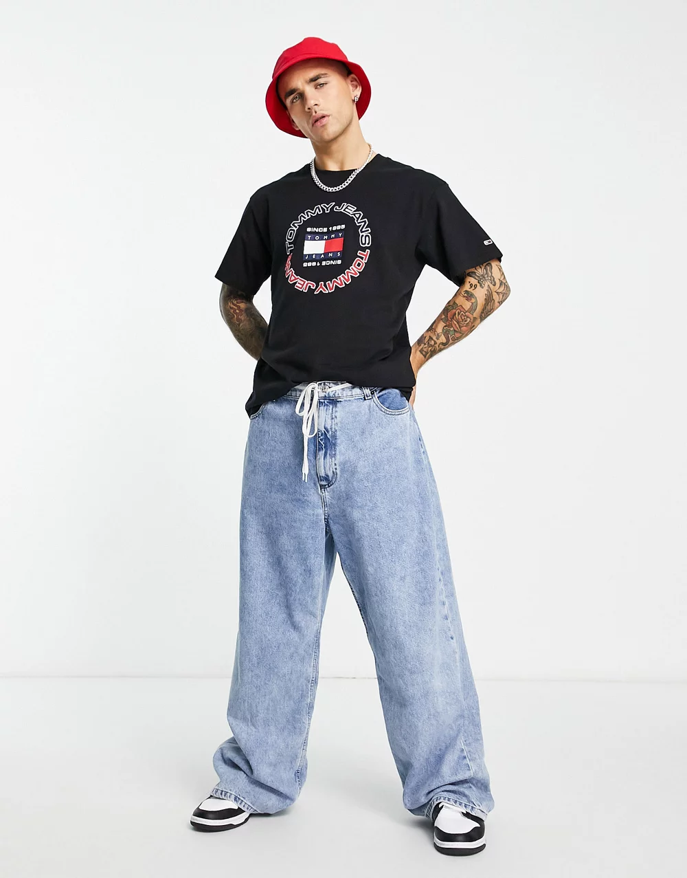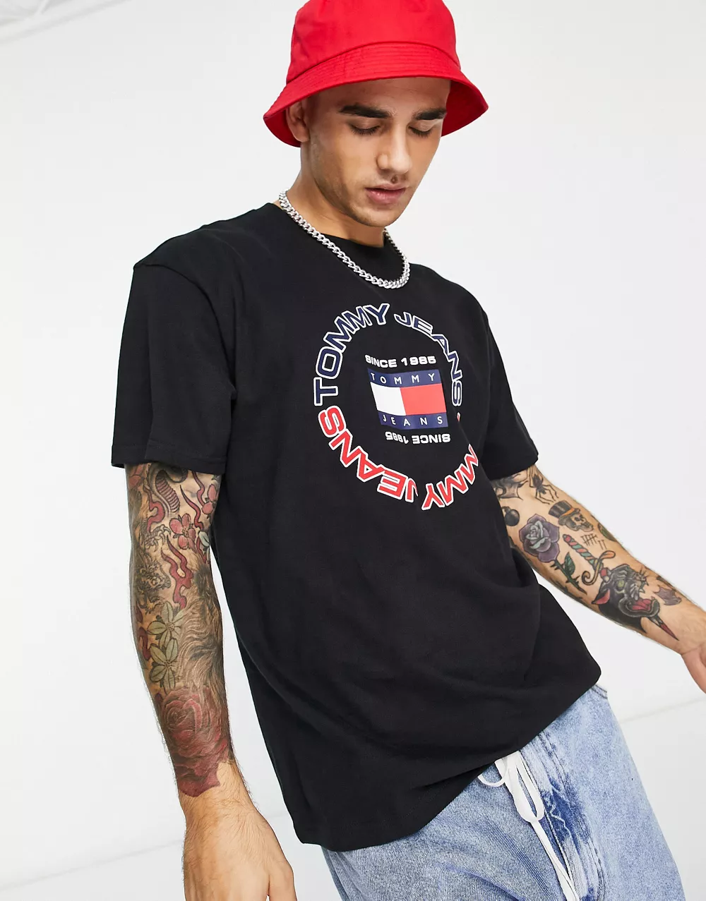 - Tommy Jeans athletic circle logo relaxed fit t-shirt in black