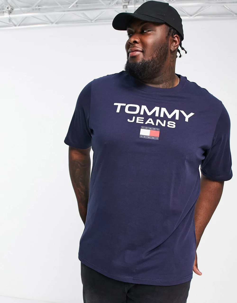 - Tommy Jeans Big & Tall flag logo t-shirt in navy
