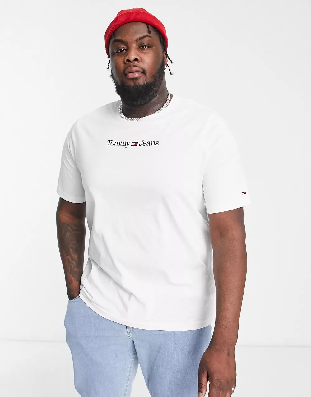 - Tommy Jeans Big & Tall linear logo t-shirt in white