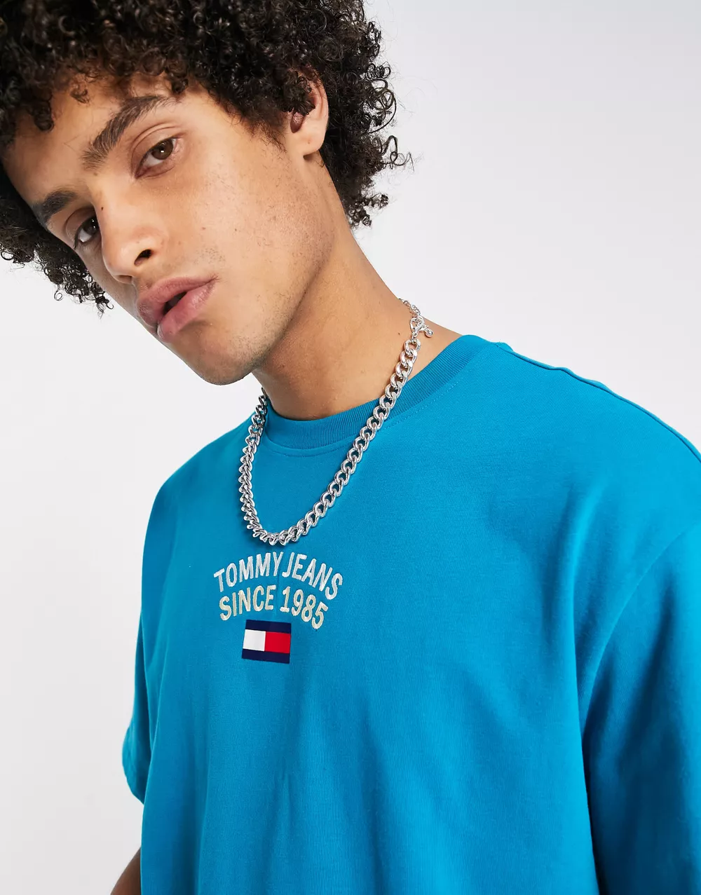 - Tommy Jeans boxy fit central logo cotton t-shirt in blue