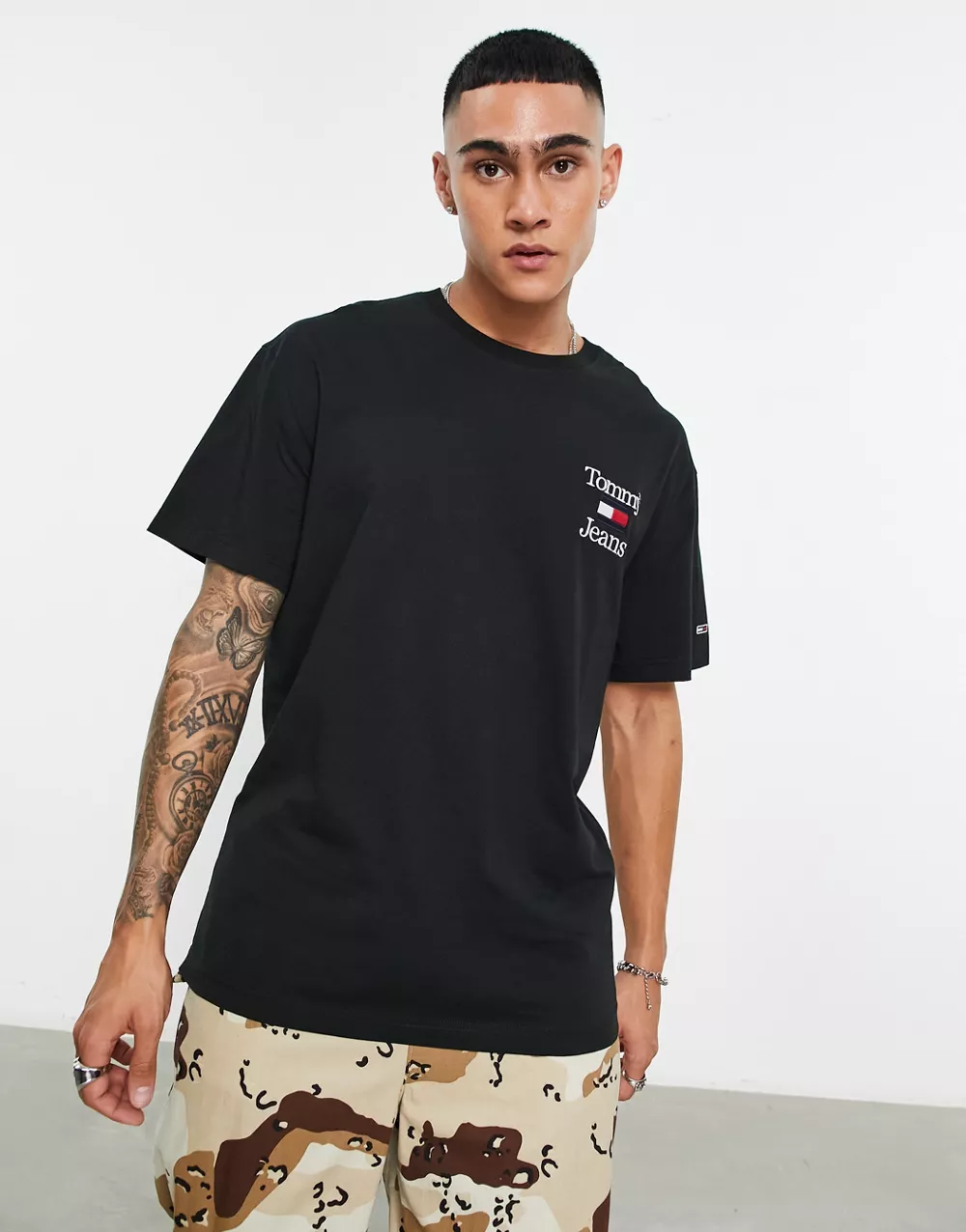 - Tommy Jeans chest flag logo relaxed fit t-shirt in black