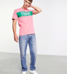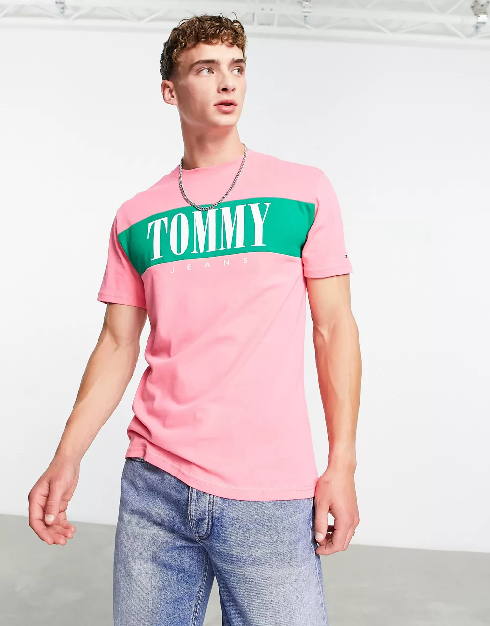 - Tommy Jeans classic fit colour block serif logo t-shirt in pink