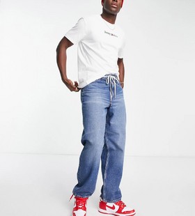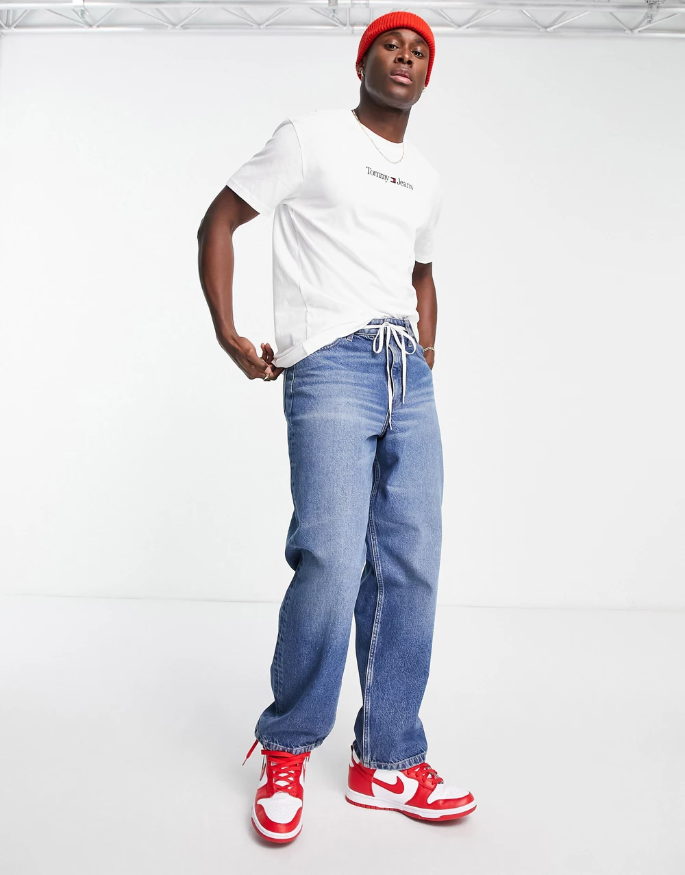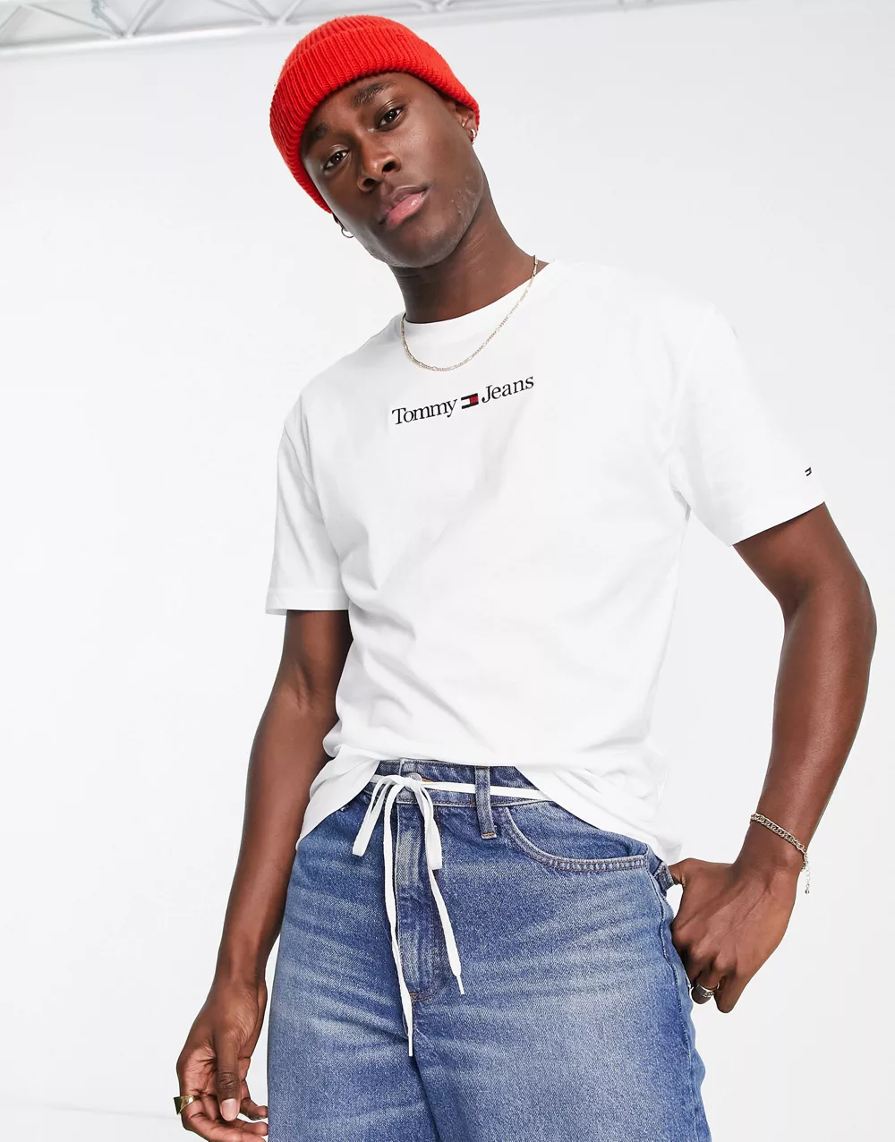 - Tommy Jeans classic fit linear logo t-shirt in white