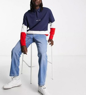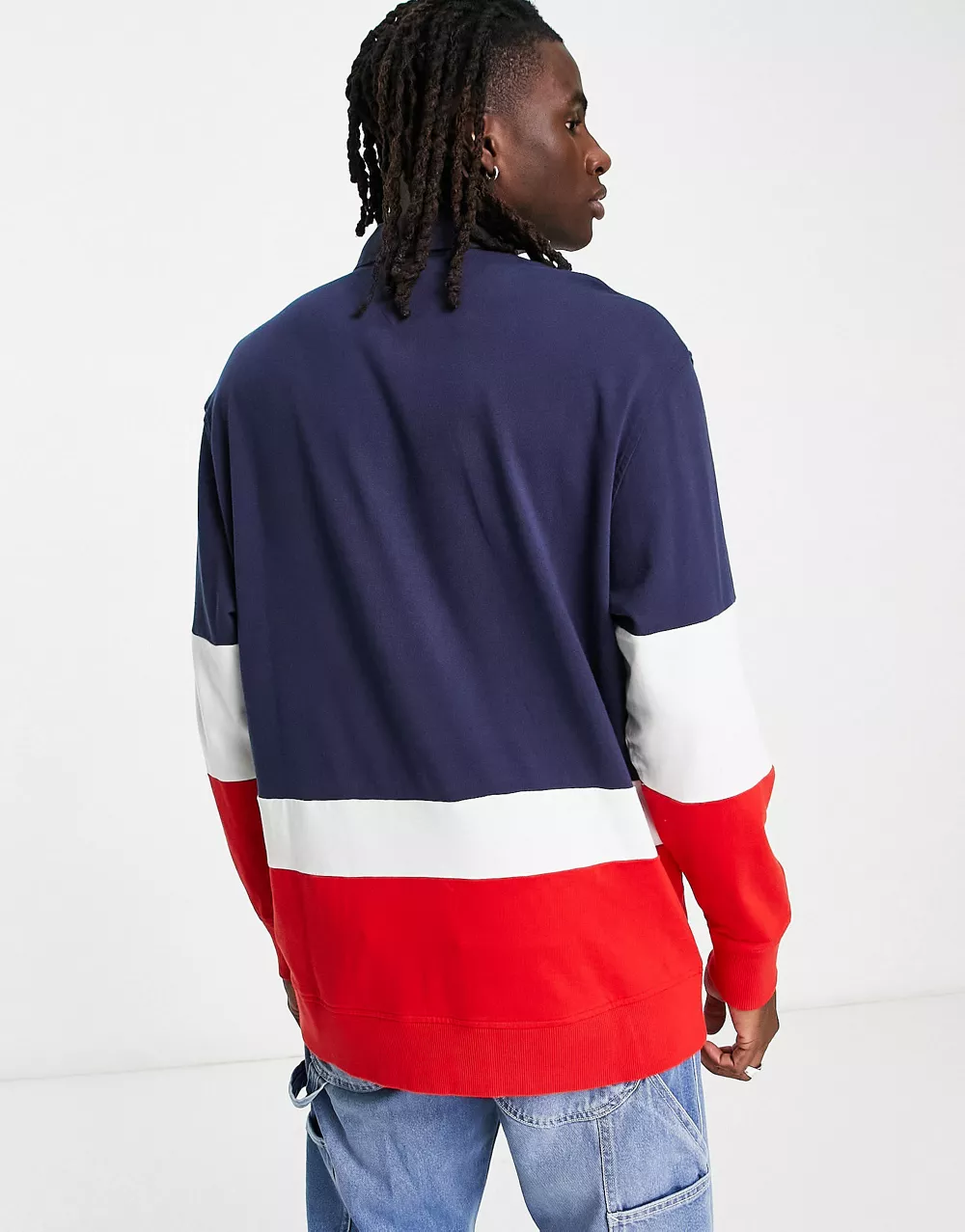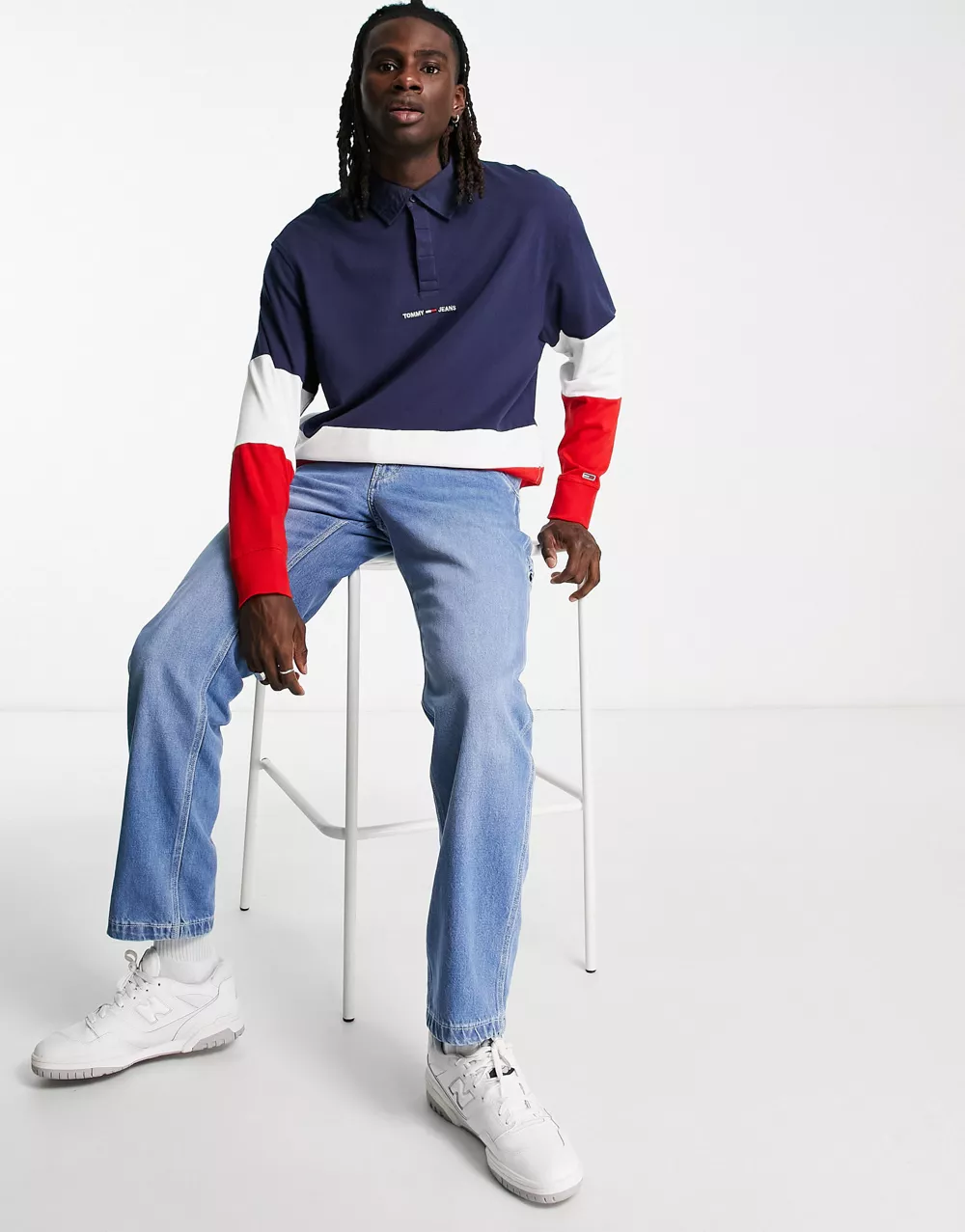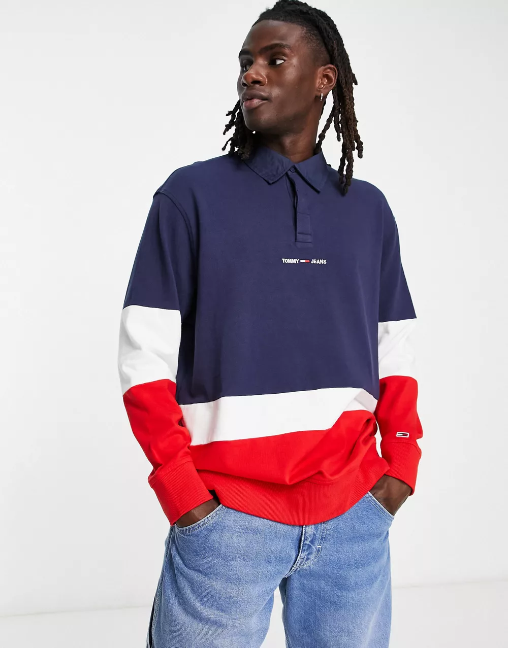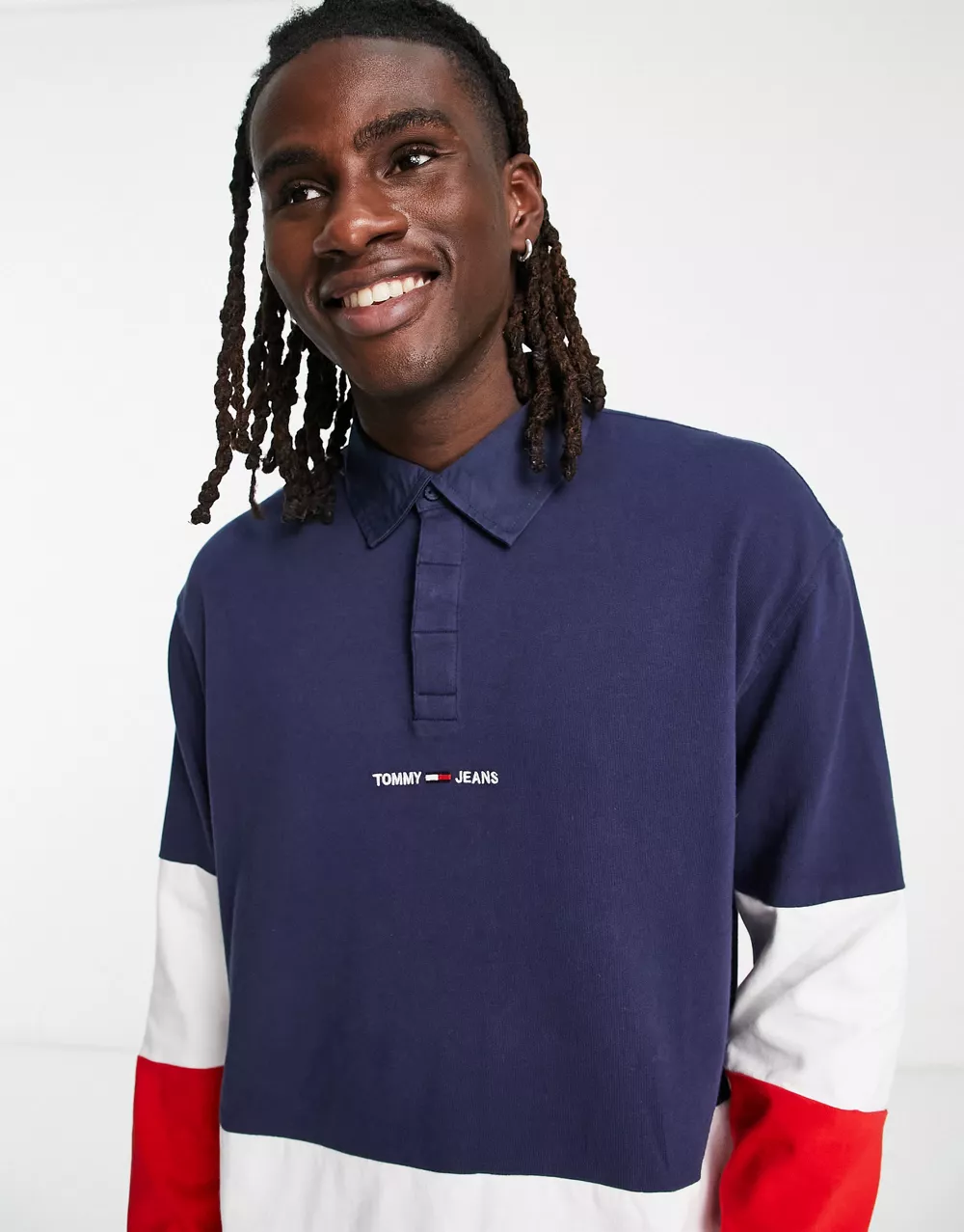 - Tommy Jeans cotton archive colour block rugby polo in navy - NAVY