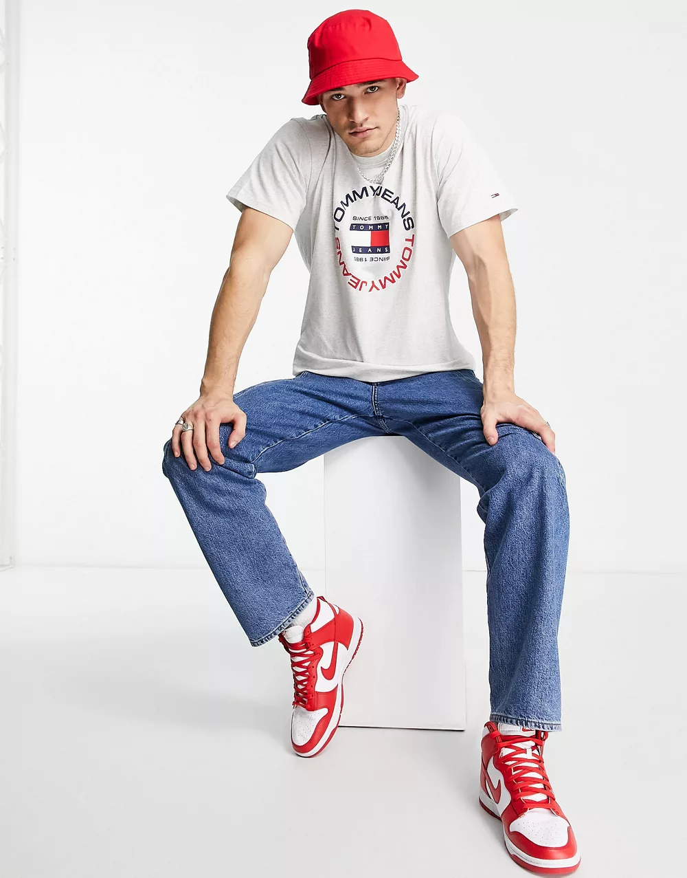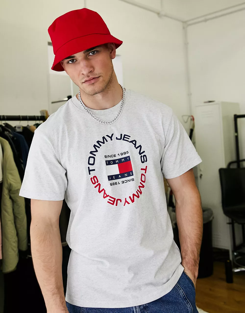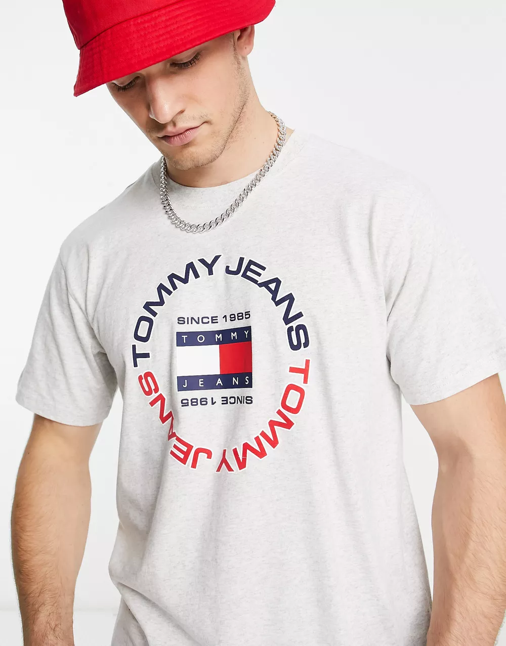 - Tommy Jeans cotton athletic circle logo relaxed fit t-shirt in grey marl