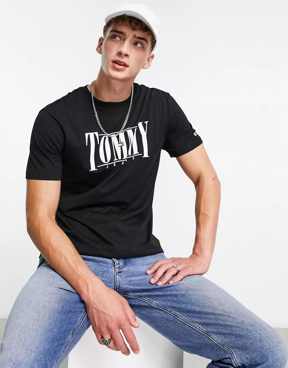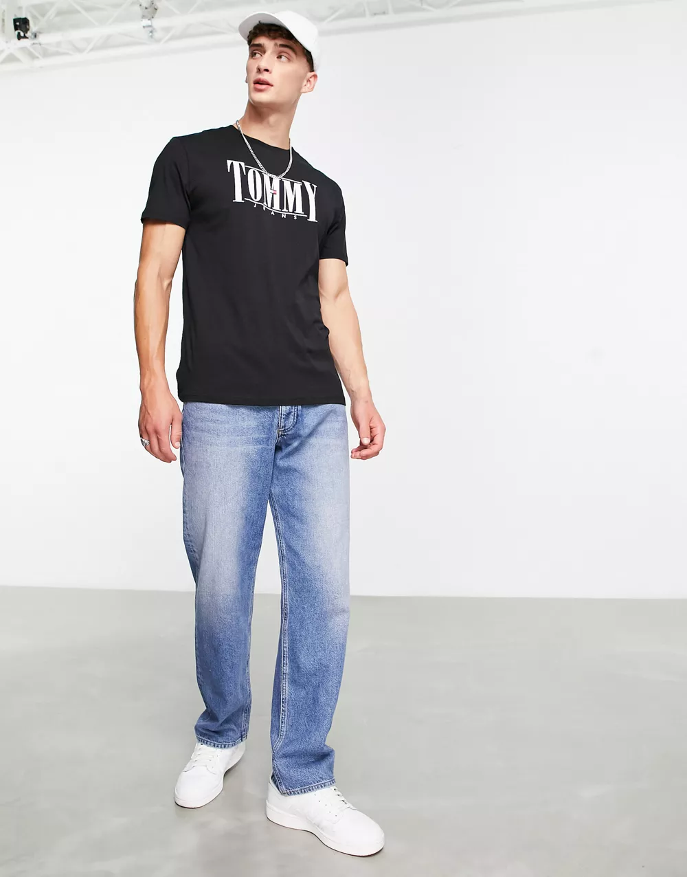 - Tommy Jeans cotton classic fit serif logo t-shirt in black