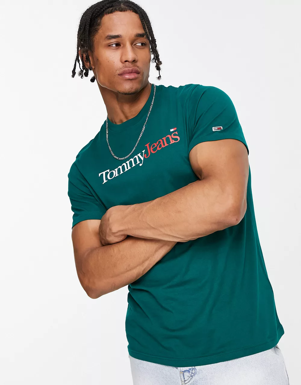 - Tommy Jeans cotton multi logo t-shirt in dark green