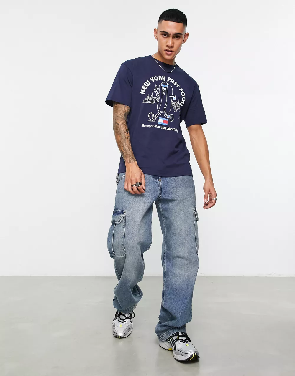 - Tommy Jeans cotton NYC sport club print classic fit t-shirt in navy