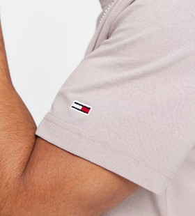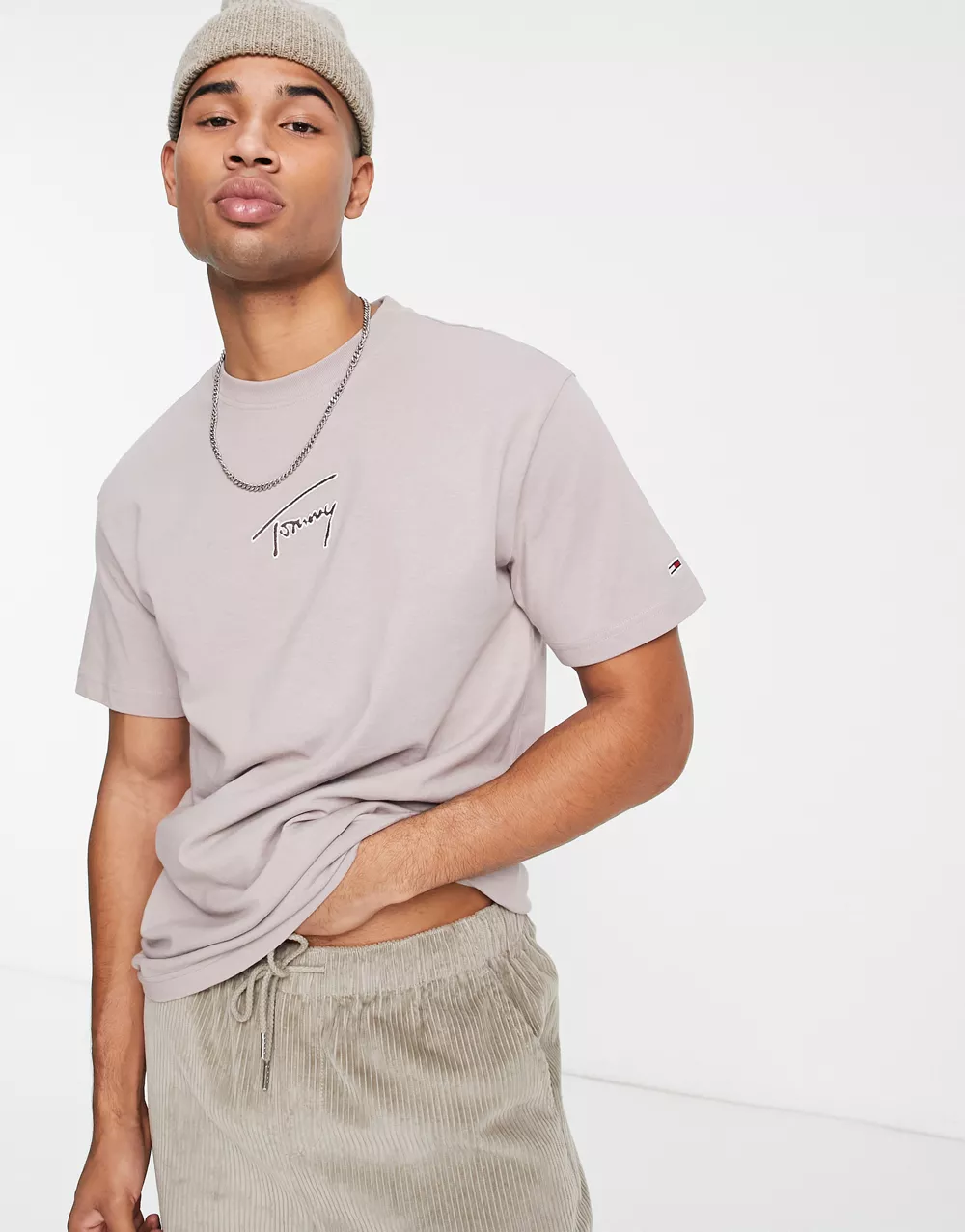 - Tommy Jeans cotton signature central logo classic fit t-shirt in stone