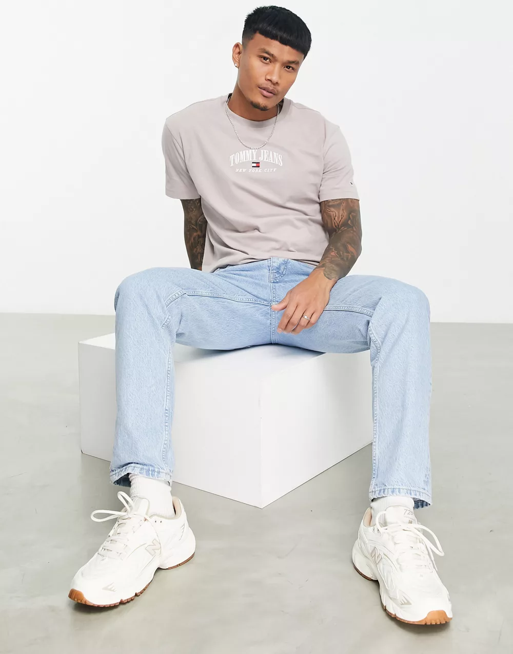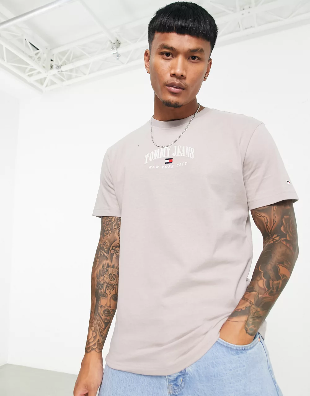 - Tommy Jeans cotton small varsity logo classic fit t-shirt in stone