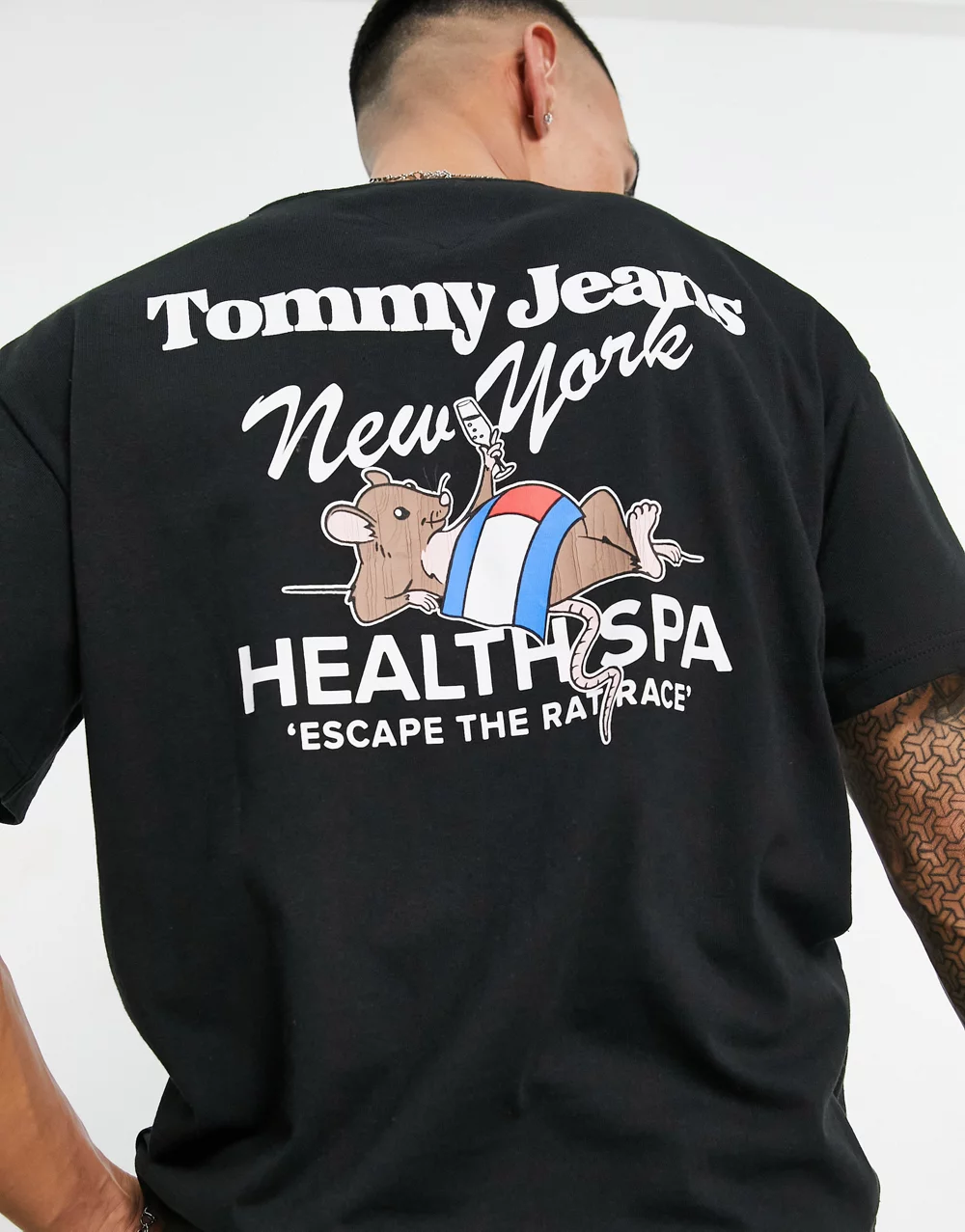 - Tommy Jeans NYC sports club back print t-shirt relaxed fit in black