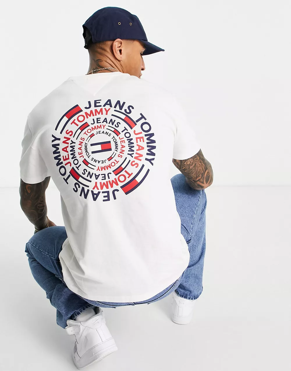 - Tommy Jeans round back print t-shirt classic fit in cream - CREAM