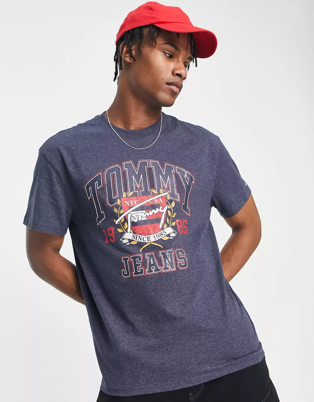 - Tommy Jeans t-shirt in navy with collegiate print