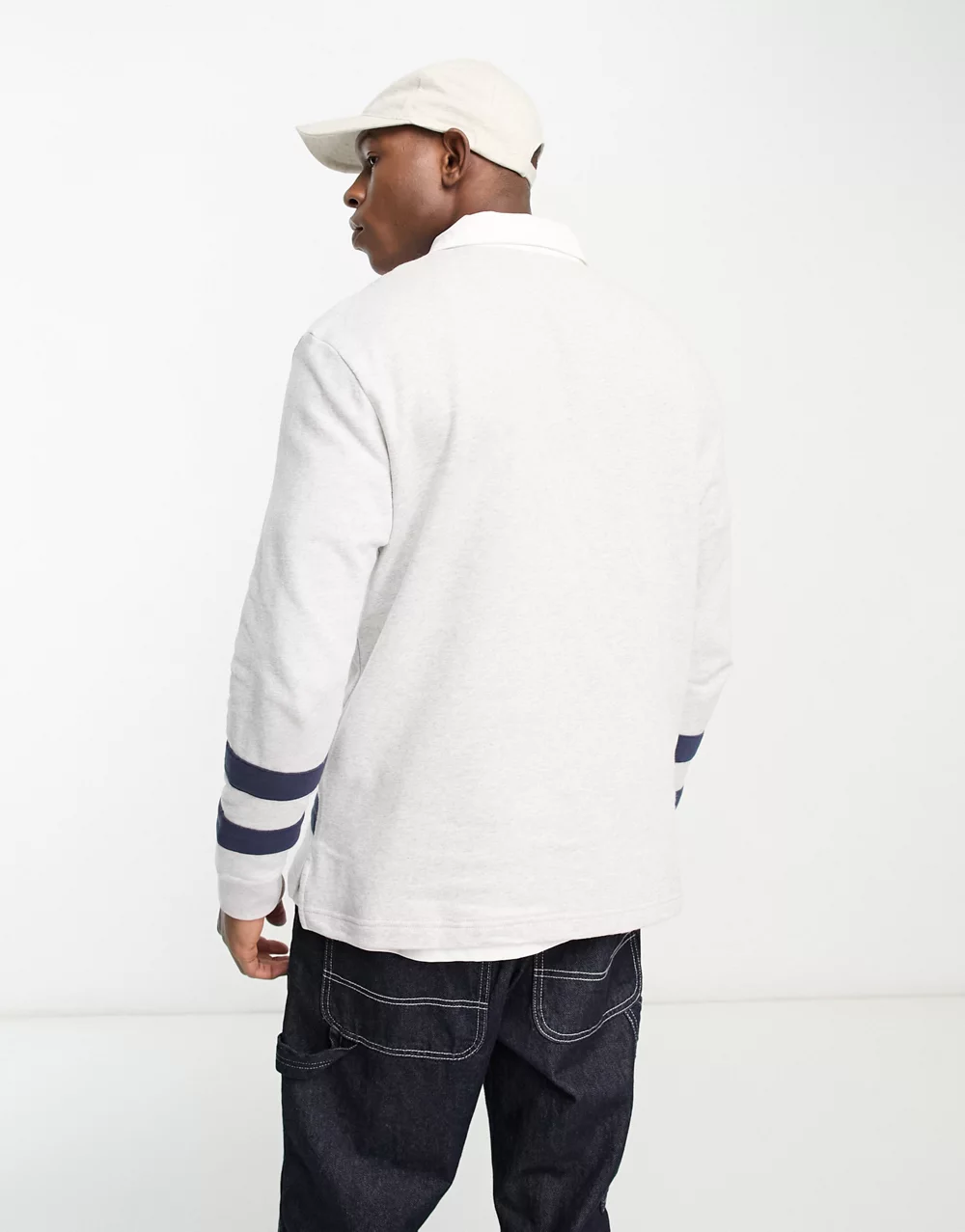 - Tommy Jeans varsity logo relaxed fit rugby polo in grey marl