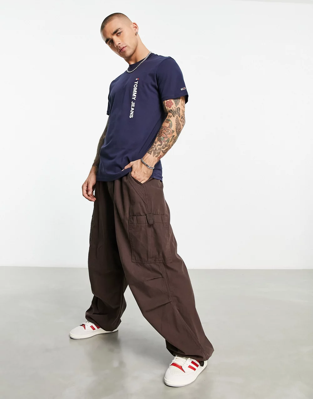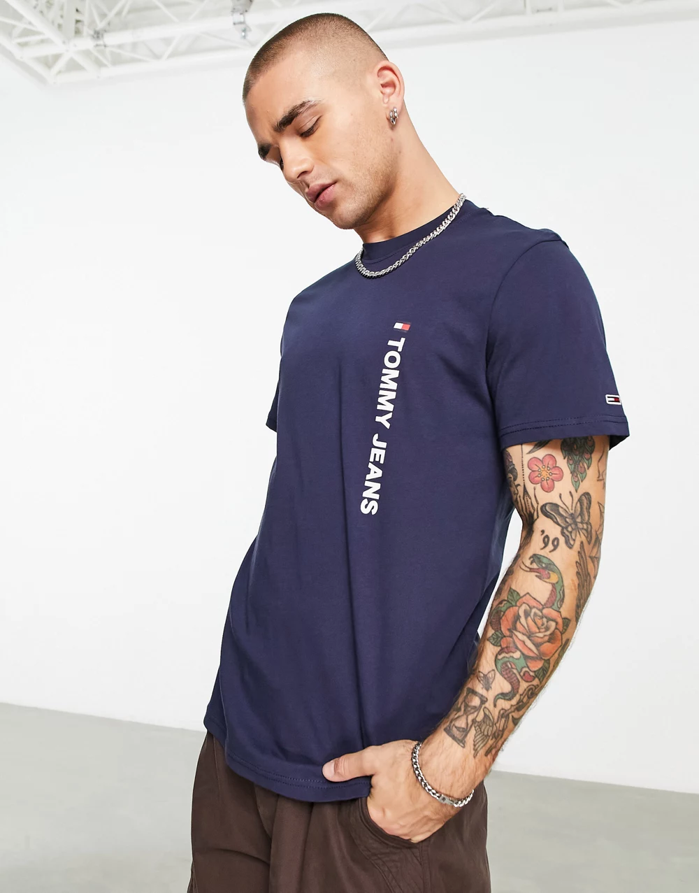 - Tommy Jeans verticle logo t-shirt in navy