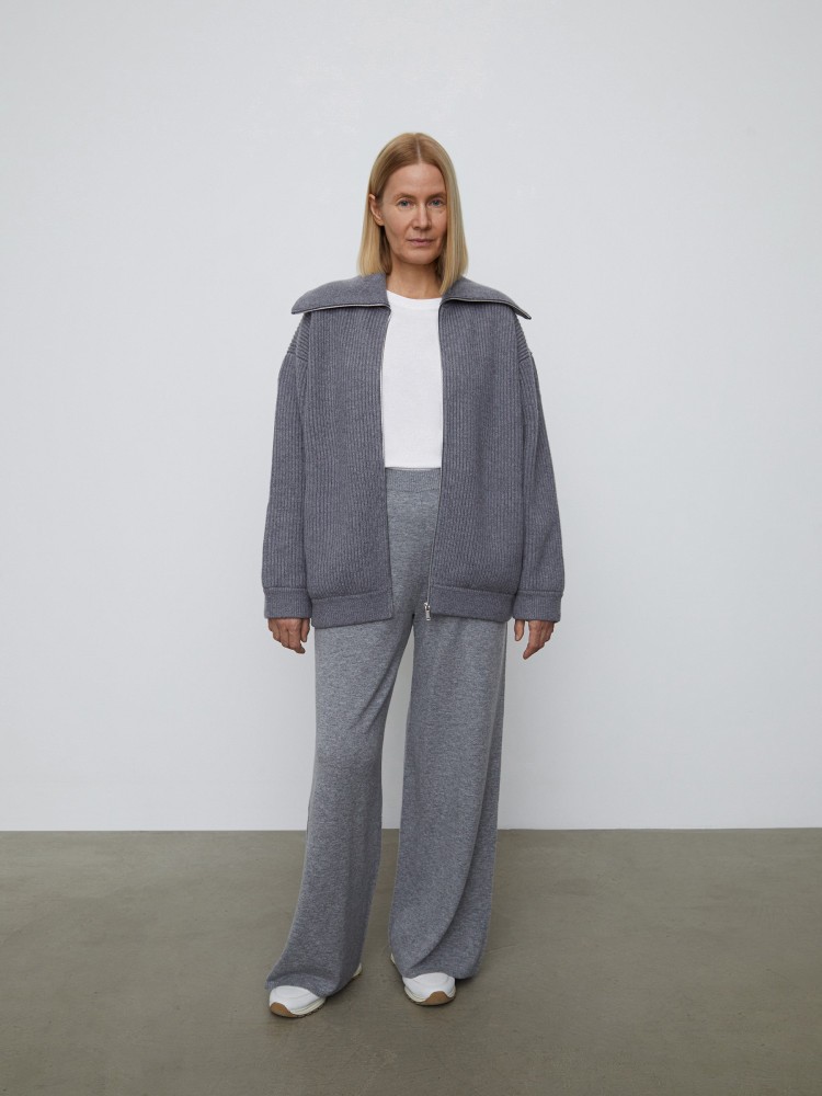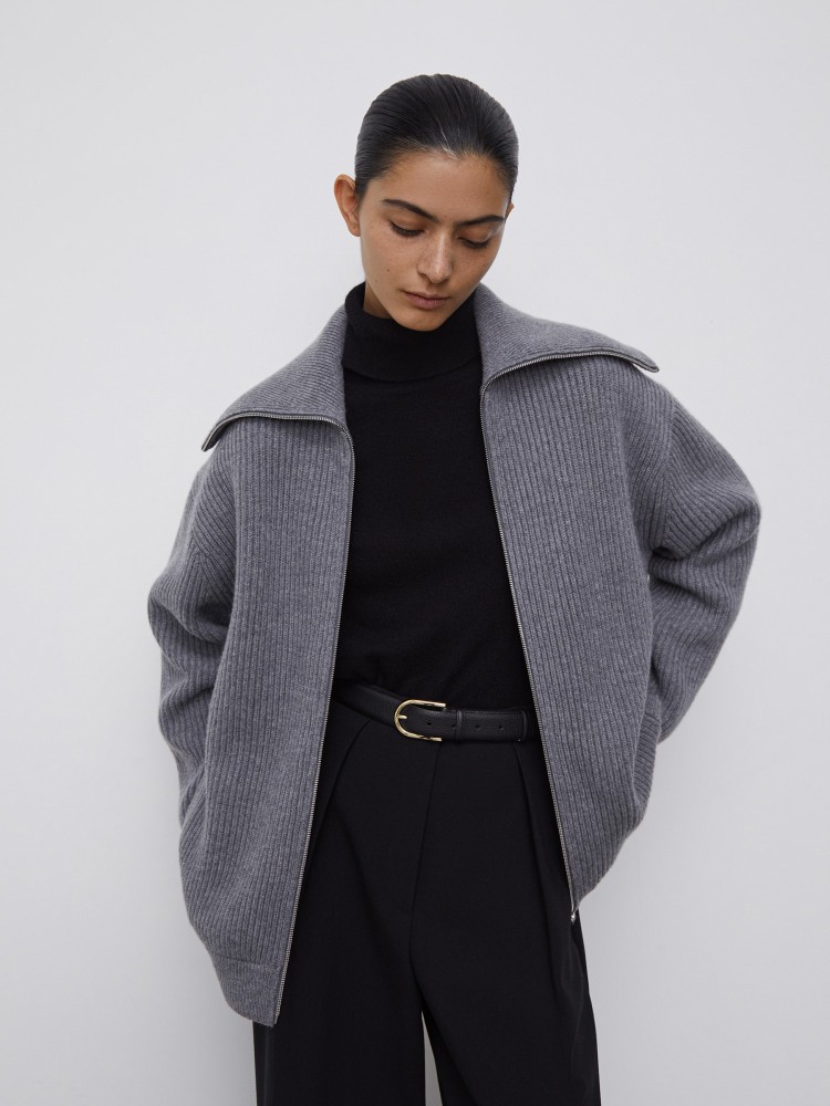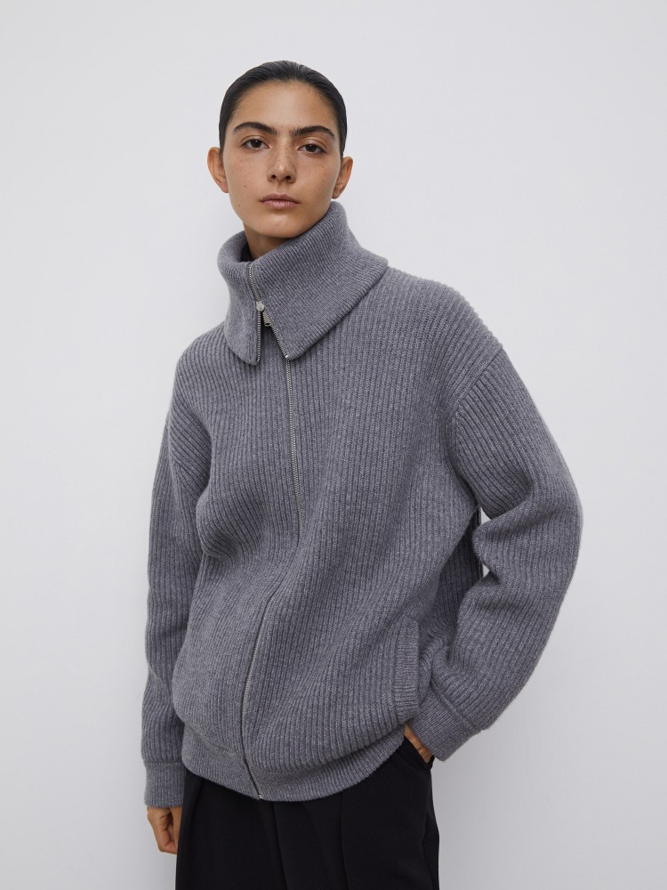Вязаная куртка с широким воротником — уютная модель из мягкой и согревающей мериносовой шерсти для межсезонья и прохладного лета. Цельная подкладка делает куртку теплее, а минималистичные детали легко вписываются в повседневные образы.Сделано в Китае.