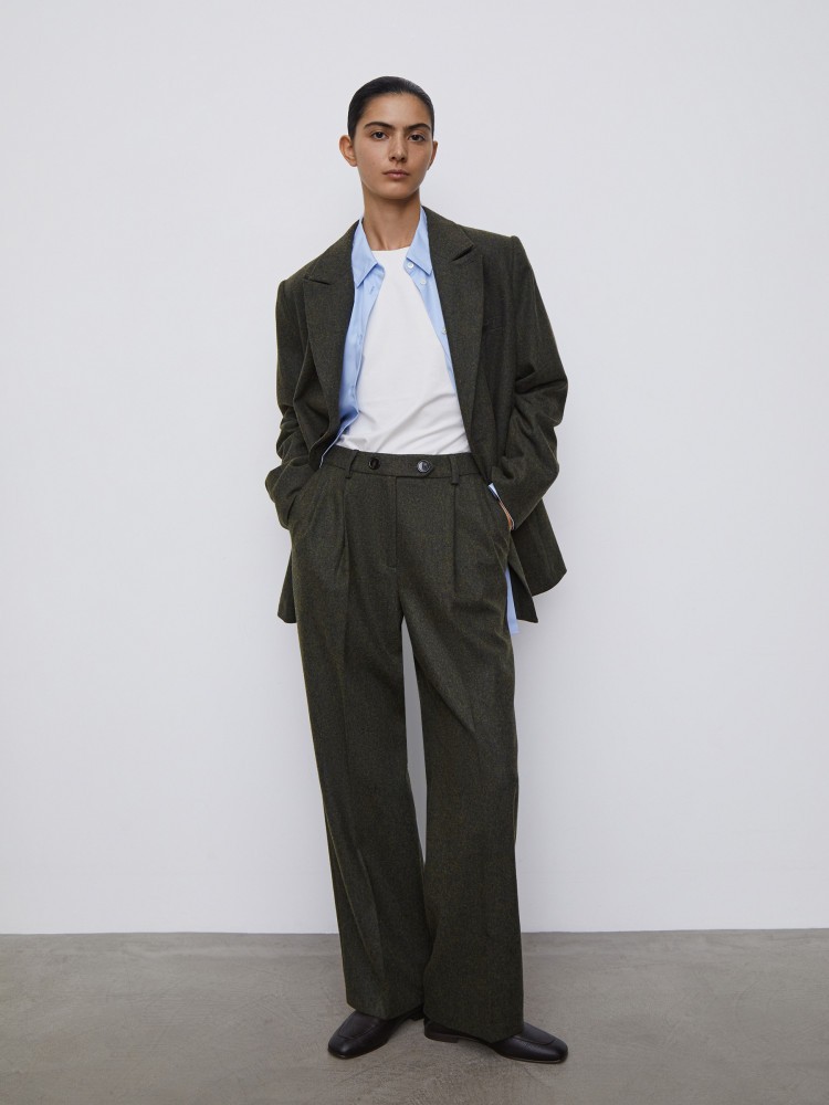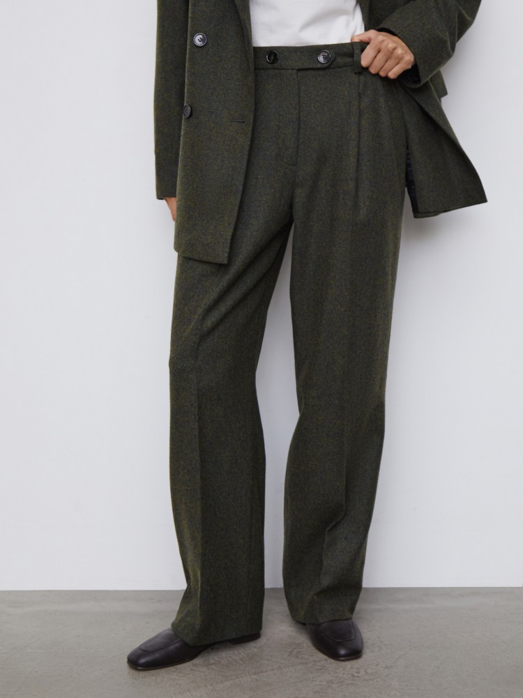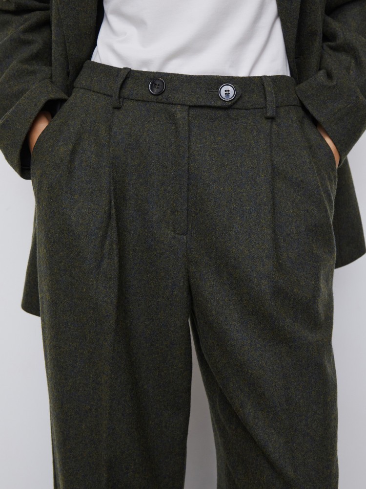 Наш бестселлер, свободные брюки с пуговицами на широком поясе и складками — все детали вместе создают акцент на талии и гармоничный силуэт. Выполнены из итальянской шерстяной ткани с мягким ворсом, легкой и согревающей.Сделано в России.