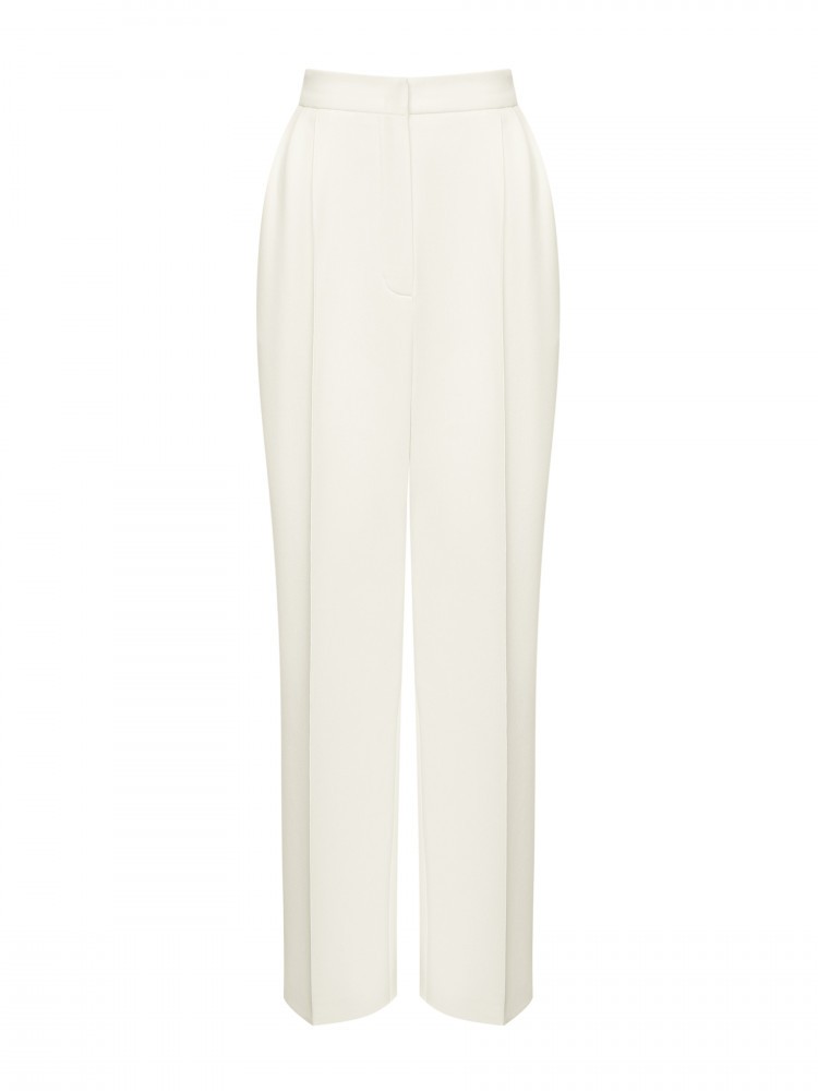 Прямые, чуть укороченные брюки с комфортной посадкой на талии и мягкими складками от пояса. Выполнен из приятной к коже костюмной ткани с гладкой фактурой. Без подкладки. Можно составить комплект с жакетом из нашей коллекции.Сделано в Беларуси.