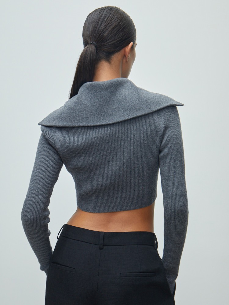 Укороченный кардиган с широким отложным воротником предоставит возможность не расставаться с любимыми кроп-топами даже зимой. Благодаря рибовому переплетению модель садится точно по фигуре и не теряет форму со временем, а специально подготовленная шерсть мериноса дарит ощущение мягкости и тепла.Сделано в Китае.