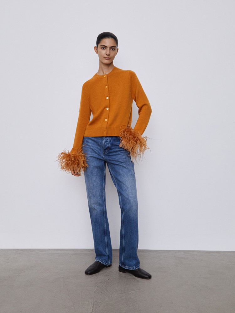 Кардиган с перьями легко превратит casual-образ с джинсами в вечерний. Модель связана из мягкой и дышащей шерсти мериноса и украшена пуговицами из натурального перламутра. Пушистые манжеты из страусиных перьев можно в любой момент снять — это удобно, если до вечеринки у вас еще много дел.Сделано в Китае.