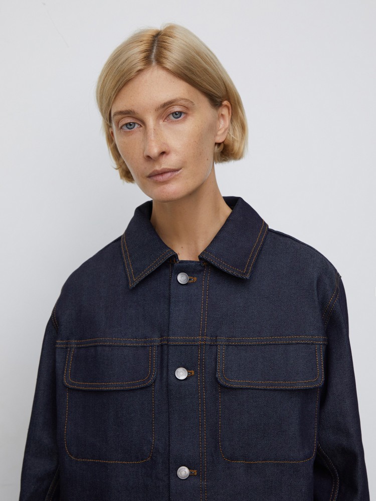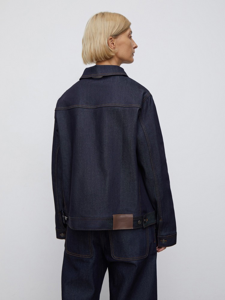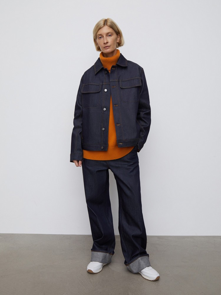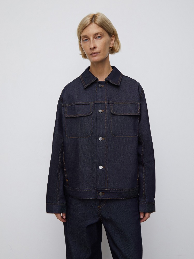 Куртка из денима selvedge. Прямая свободная куртка с застежкой на пуговицы и хлястиками словно позаимствована из мужского гардероба. Выполнена из японского денима selvedge плотностью 13,25 Oz: этот прочный жестковатый материал с узнаваемой кромкой со временем будет становиться мягче, а приобретенные потертости будут отражать характер владельца. Международный стандарт OCS (Organic Content Standard) подтверждает, что хлопок выращен бережным способом, без пестицидов, чтобы сохранить чистоту почвы и воды и исключить вредное влияние на здоровье фермеров.Сделано в Турции.