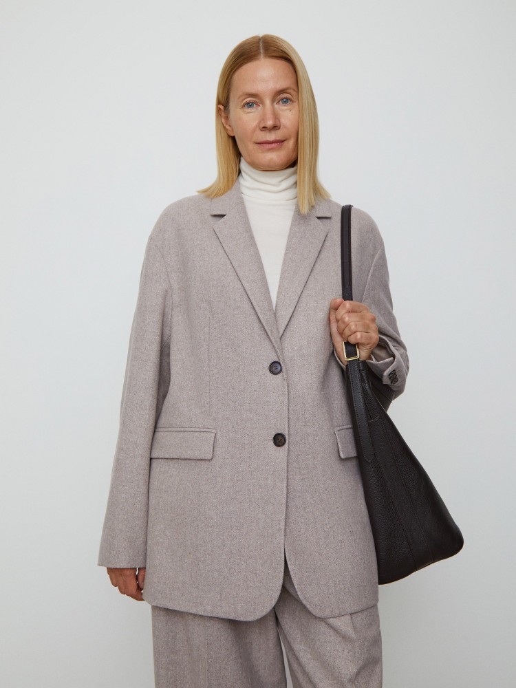 Свободный пиджак с мягкой линией плеча и строгими лацканами, характерными для мужских моделей — одновременно расслабленный и собранный образ. Выполнен из костюмной шерсти с кашемиром — ворсистой, плотной, согревающей. На подкладке. Можно составить комплект с брюками из нашей коллекции.Сделано в России.