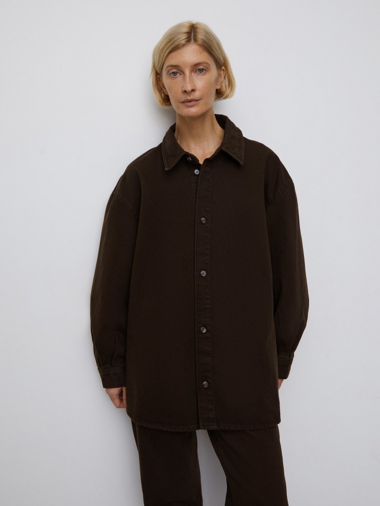 Рубашка из органического хлопка. Свободная рубашка с застежкой на пуговицы и слегка расширенным книзу силуэтом: вы можете носить ее как куртку поверх футболок и кроп-топов. Выполнена из прочного твила плотностью 13 Oz, который отлично держит форму и создает объем. Международный стандарт OCS (Organic Content Standard) подтверждает, что хлопок выращен бережным способом, без пестицидов, чтобы сохранить чистоту почвы и воды и исключить вредное влияние на здоровье фермеров.Сделано в Турции.