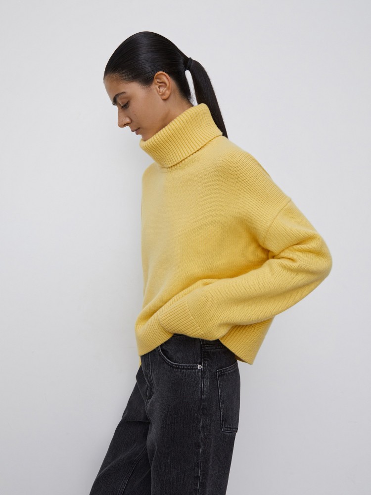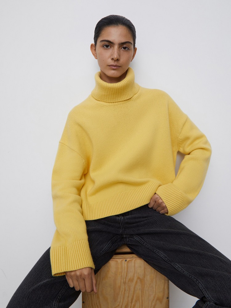 Солнечный оттенок притягивает взгляды, а силуэт оверсайз делает этот свитер максимально уютным. Для модели выбрали нежную к коже пряжу, созданную из длинных и прочных волокон мериноса. Благодаря плотному переплетению в четыре нити свитер хорошо держит форму и лучше сохраняет тепло.При трении о шершавые поверхности возможен пиллинг. Пожалуйста, пользуйтесь машинкой для удаления катышков и соблюдайте рекомендации по уходу.Сделано в Китае.