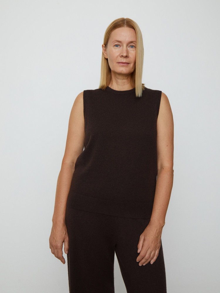 Аккуратный топ из невесомого кашемира можно сделать частью брючного костюма или стилизовать для вечера с юбкой из кожи. Универсальную модель связали из тонкой и пушистой нити — достаточно плотно, чтобы топ не просвечивал и создавал ощущение комфорта.Сделано в Китае.