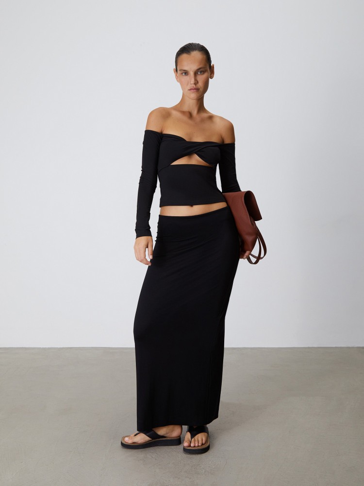 Трикотажный топ с открытыми плечами поможет вам иначе взглянуть на casual-гардероб. Мягкий дышащий трикотаж хочется носить каждый день — с джинсами и шортами, а вечерний крой позволяет стилизовать топ для выхода — например, с брюками из шелка.Сделано в России.