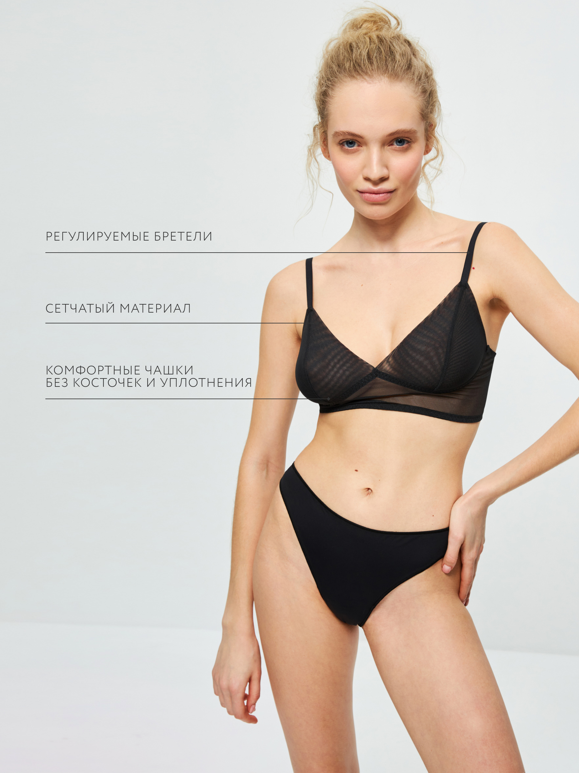 Параметры: Ткань: сетка; Чашка: без косточек без уплотнения; Вид бюстгальтера: без косточек; Вид застежки, бельё: крючок, регулируемая; Вид бретелей: регулируемые