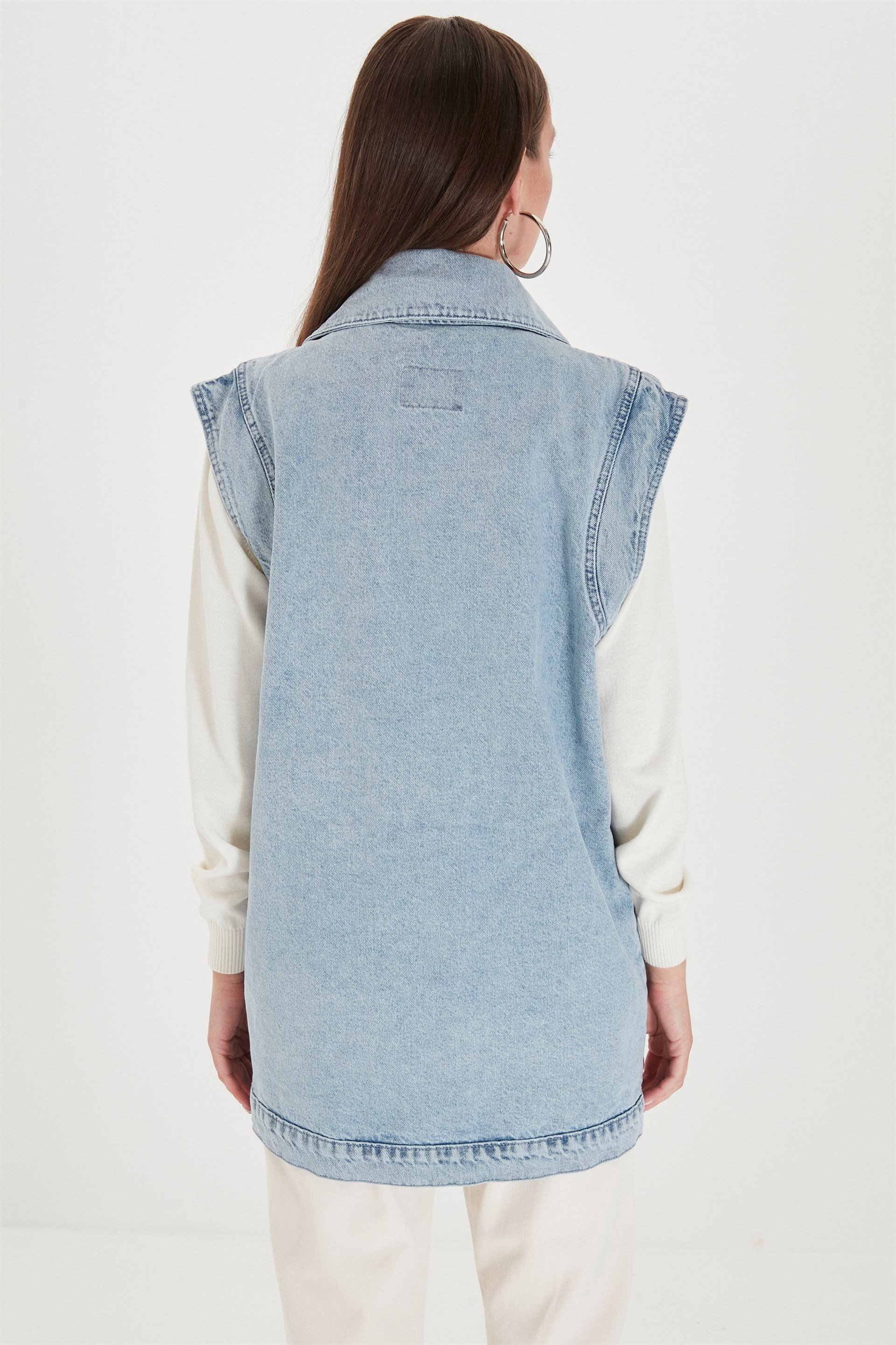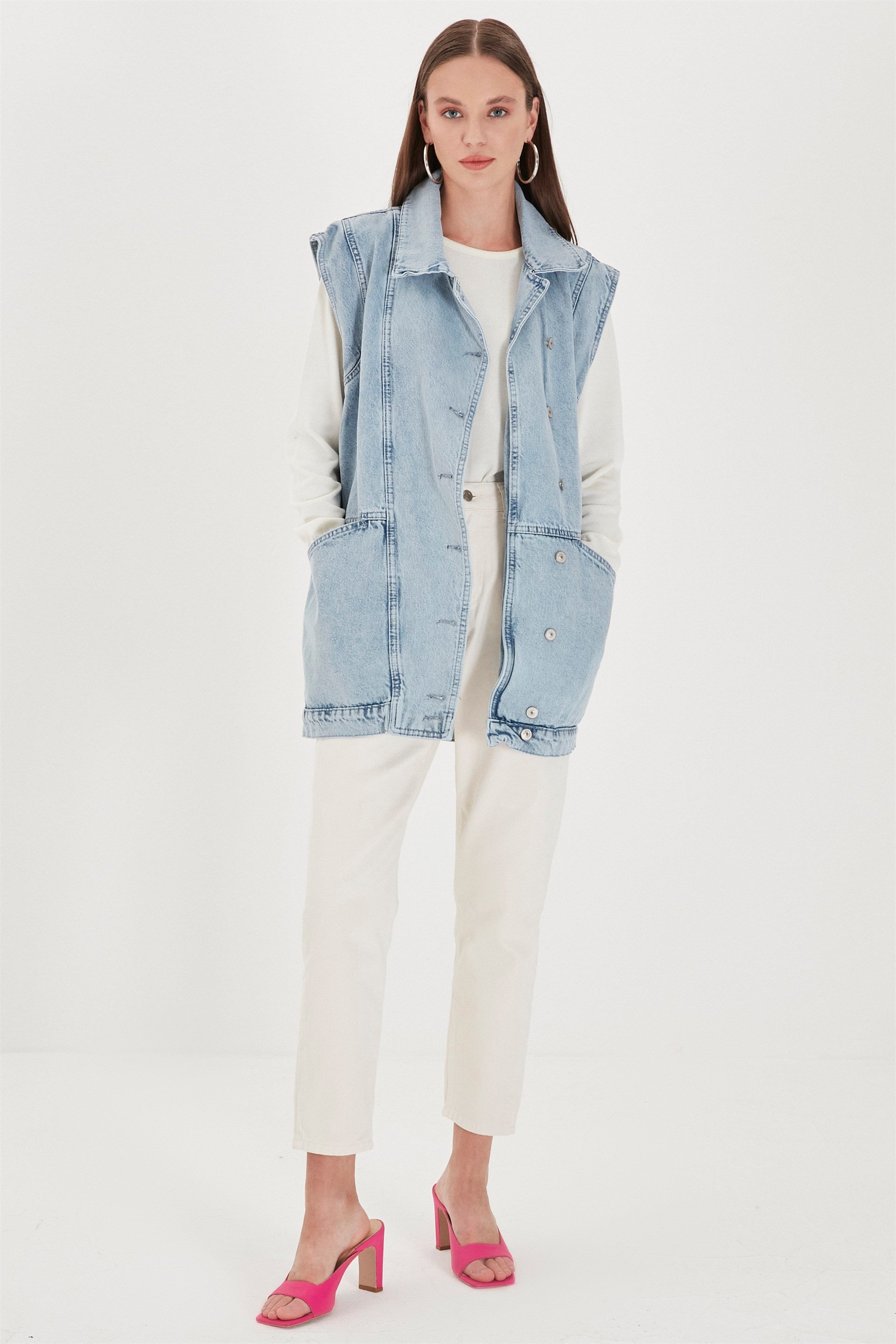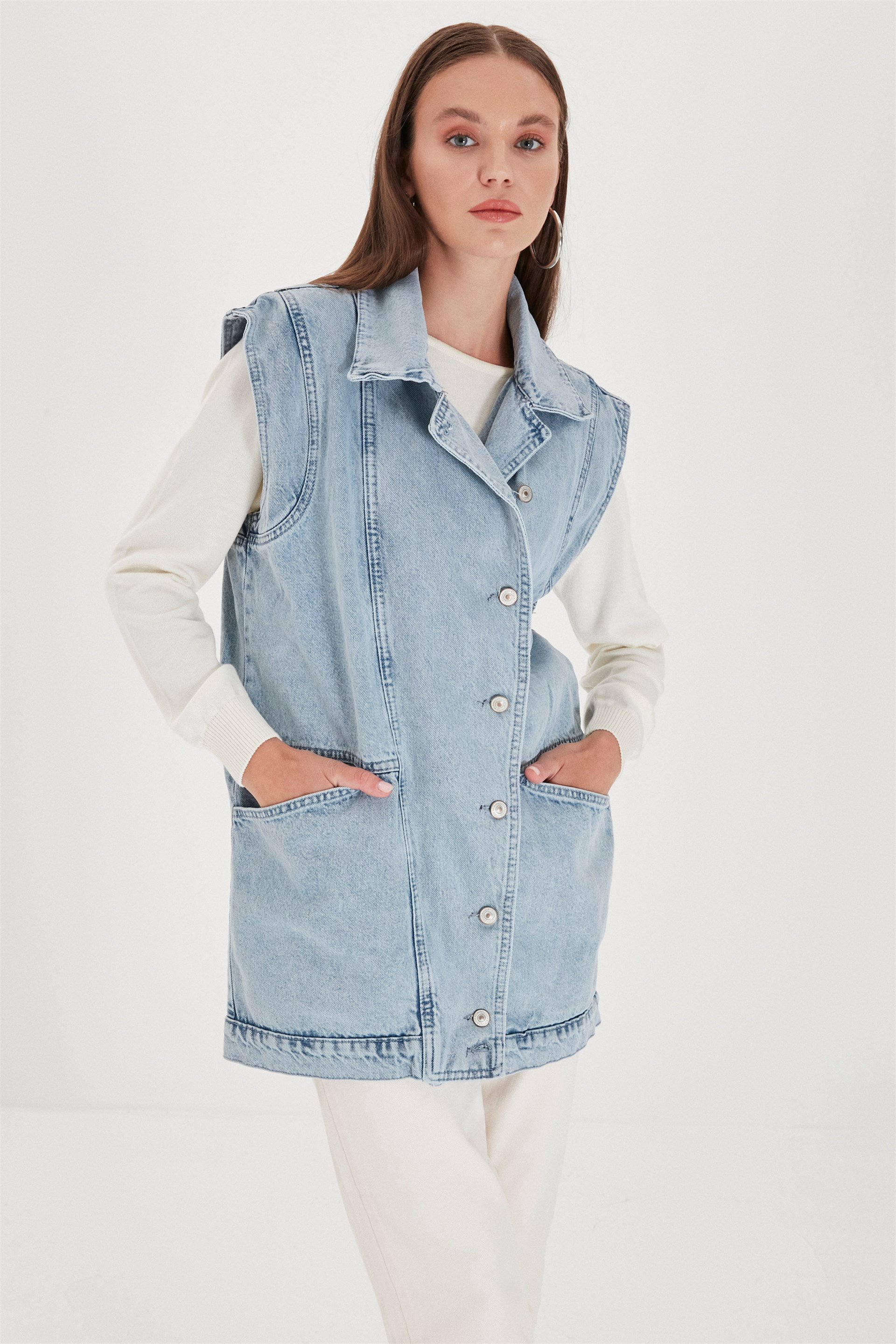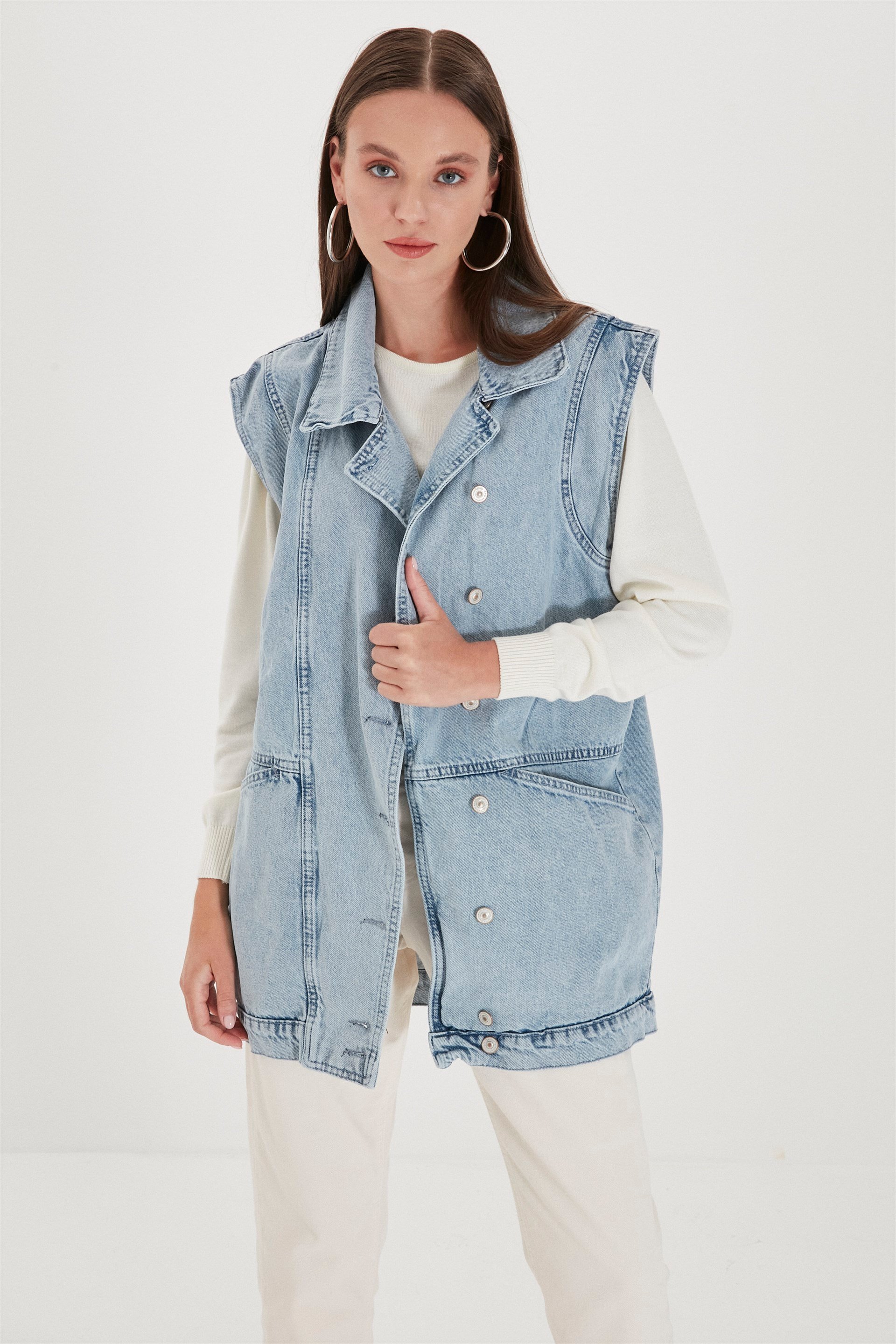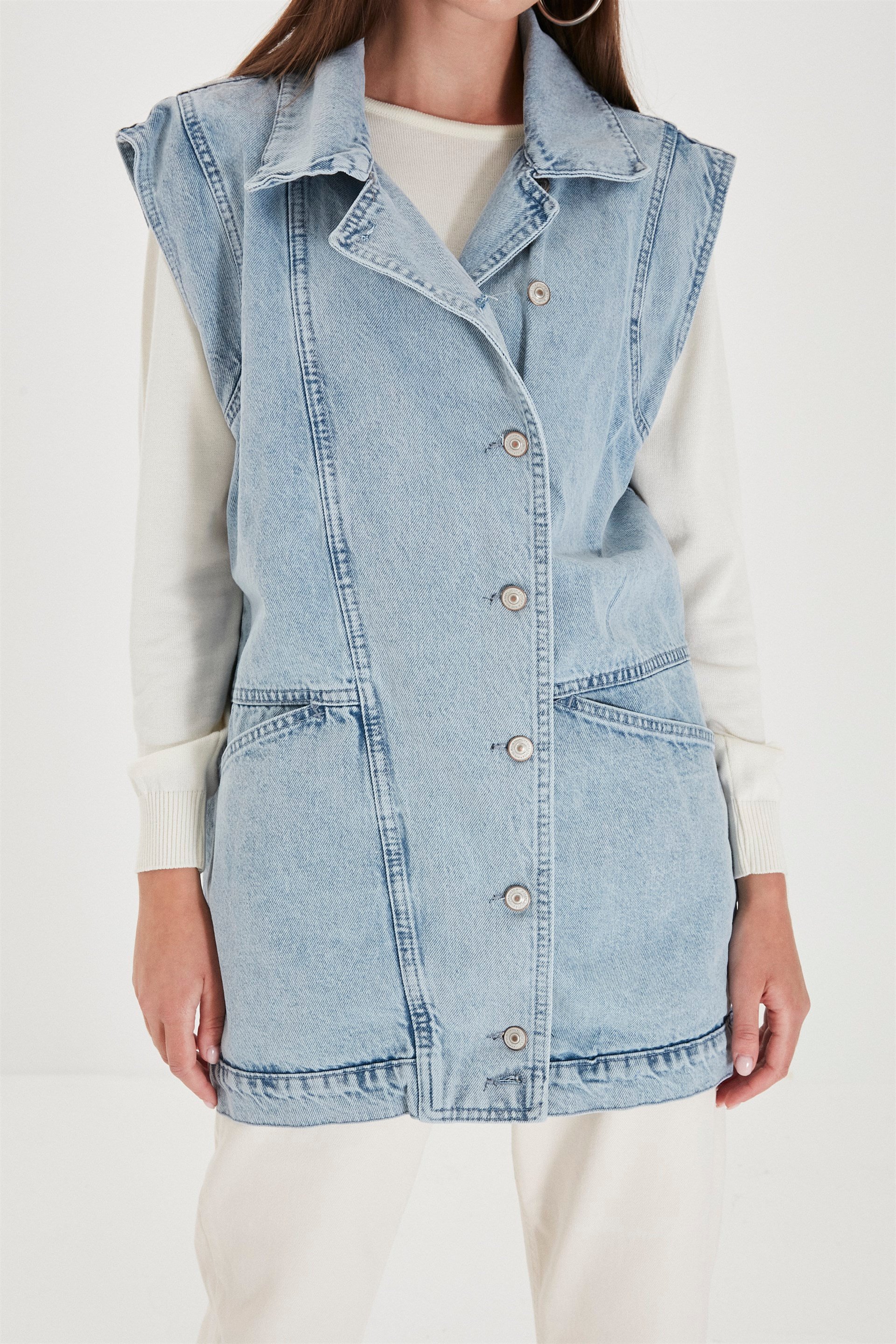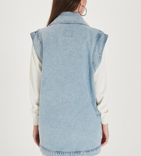 Современный джинсовый жилет с карманами - это универсальная и стильная модель, которая добавит акцент к вашему образу. Жилет выполнен из джинсовой ткани, что придает ему современный вид и позволяет легко сочетать с другой одеждой. Карманы добавляют практичность, а сам жилет может быть использован как стильный аксессуар к различным видам одежды.