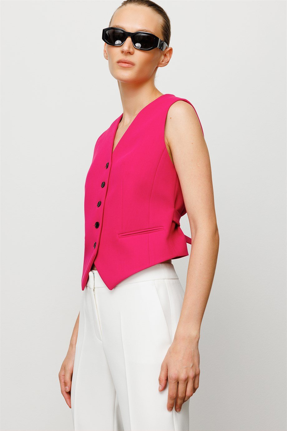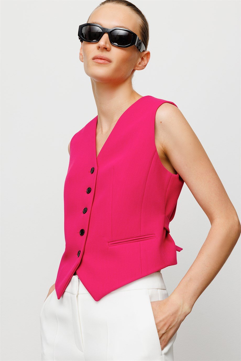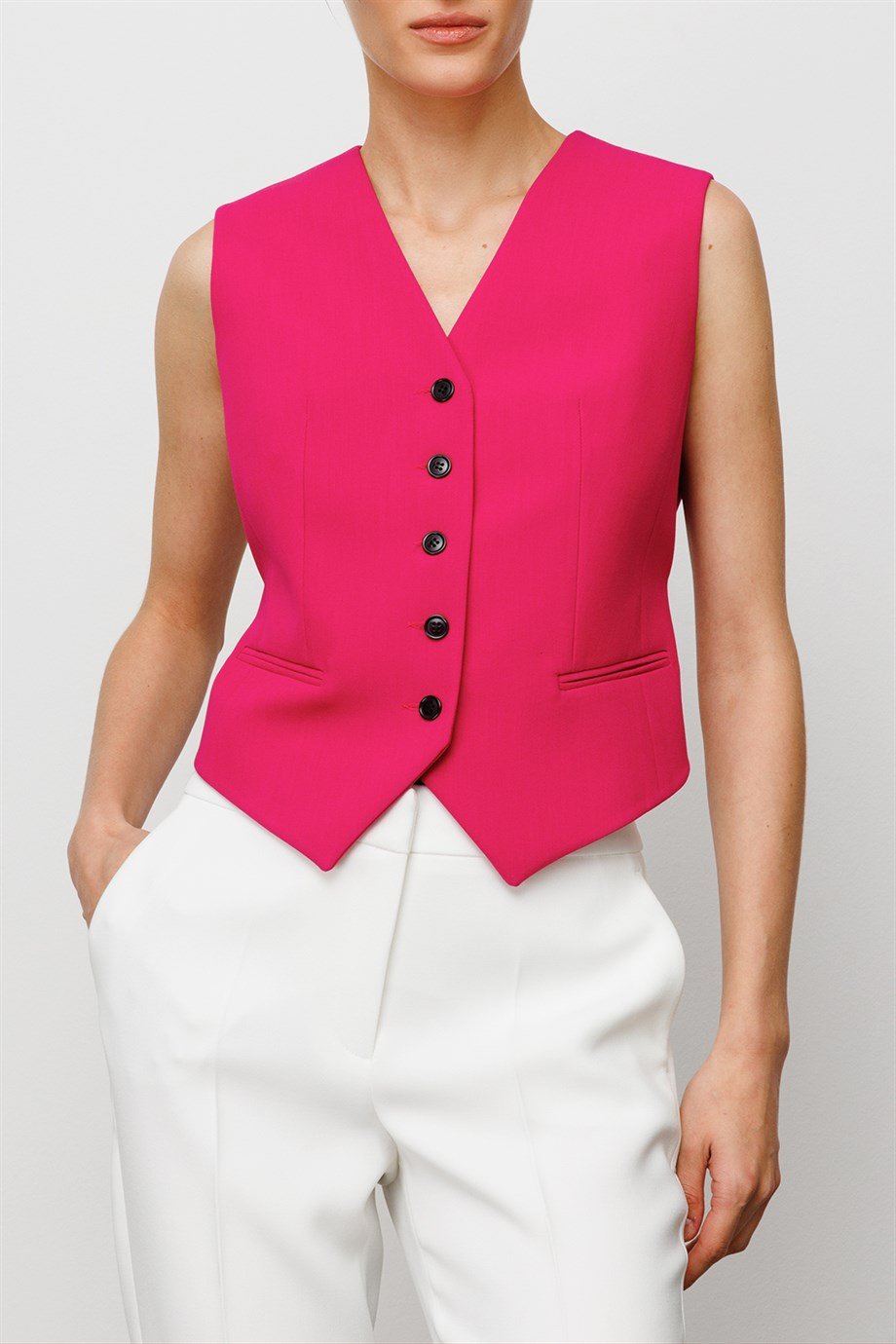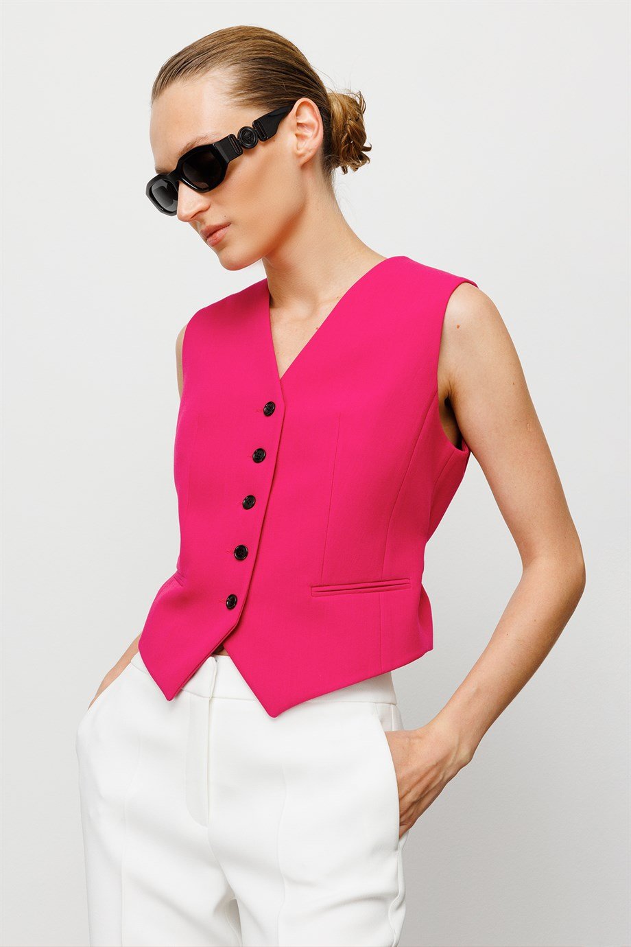 Яркий, стильный жилет розового цвета - это универсальный аксессуар, который добавит изысканности и яркости вашему образу. Розовый цвет придаст живости и женственности, а стильный дизайн делает этот жилет отличным выбором для создания модного и привлекательного наряда.