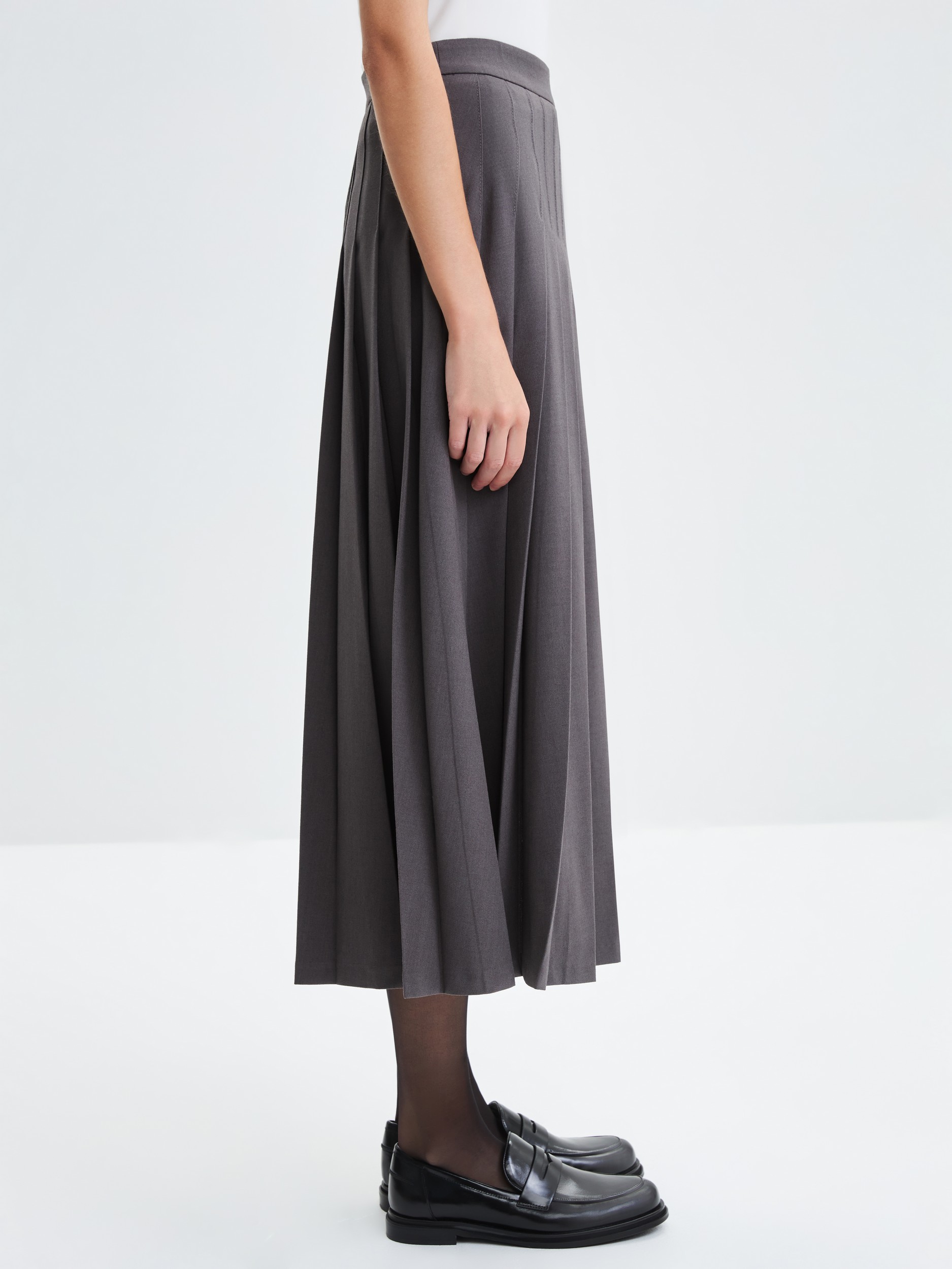 Параметры: Тип карманов: без карманов; Длина платья/юбки: миди; Модель юбки: ассиметричный низ; плисированная