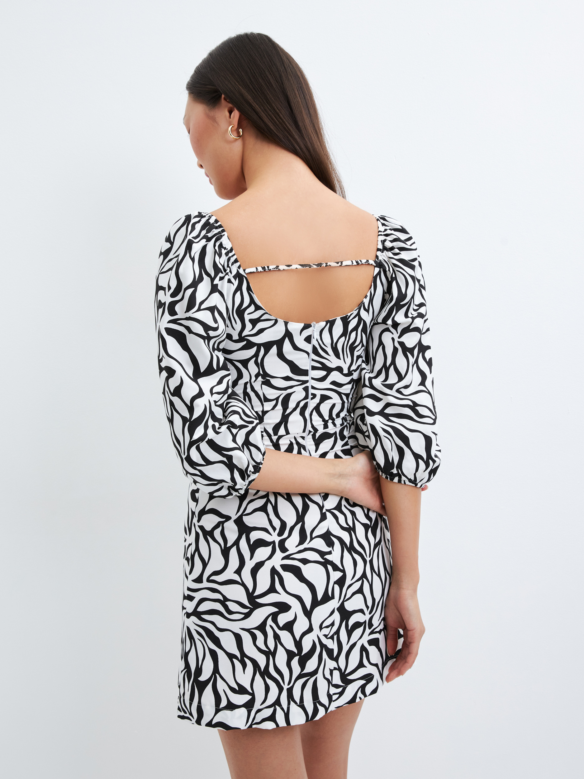 Параметры: Застежка: без застежки; Стиль: Повседневный; Тип рукава: длинный; Тип карманов: без карманов; Вырез горловины: без воротника; Декор: завязки; Силуэт: приталенный; трапеция; Длина платья/юбки: мини