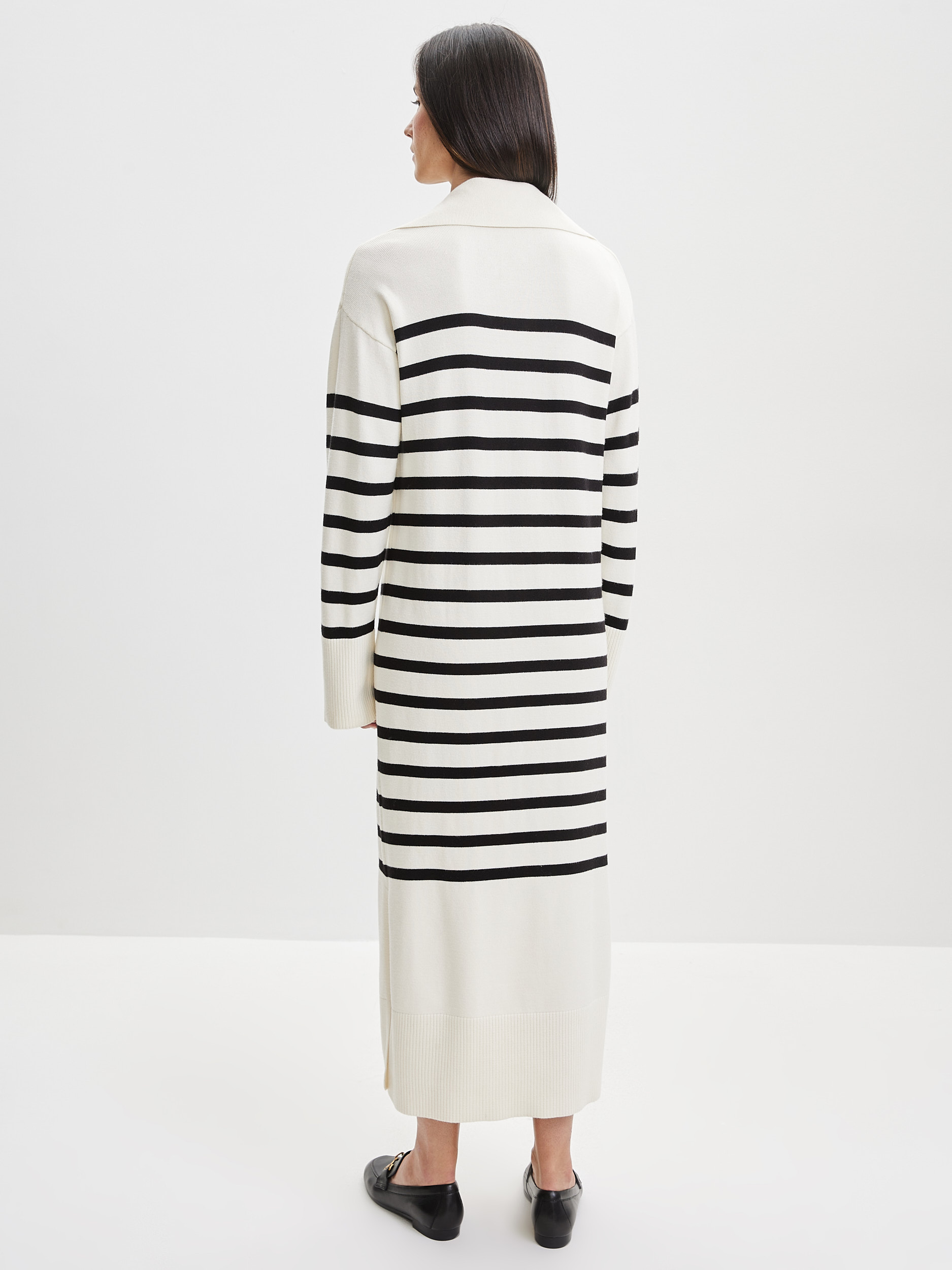 Параметры: Тип карманов: без карманов; Стиль: Повседневный; Тип рукава: длинный; Декор: отсутствует; Вырез горловины: V образный; отложной воротничок; Силуэт: прямой; полуприлегающий; Длина платья/юбки: ниже колена; Застежка: без застежки