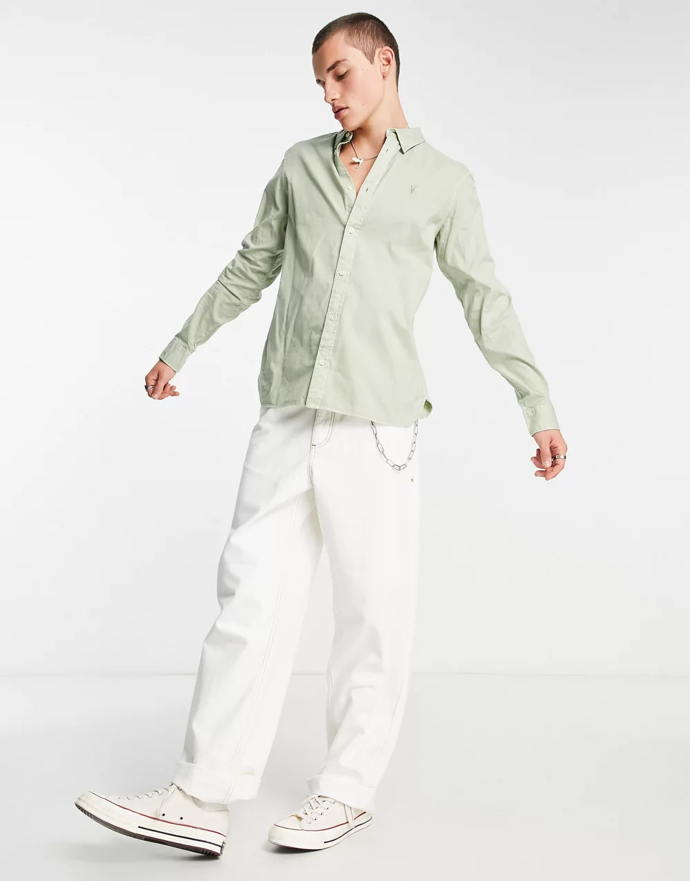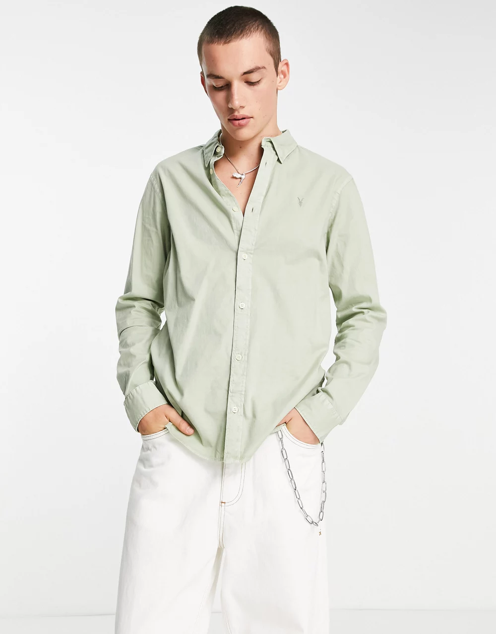 AllSaints Brace polo shirt in shadow blue Exclusive to ASOS