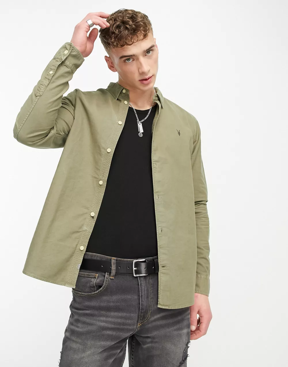 AllSaints Spotter military shirt in cargo green