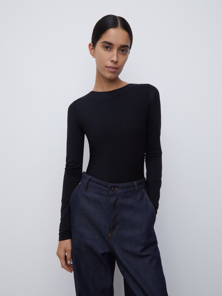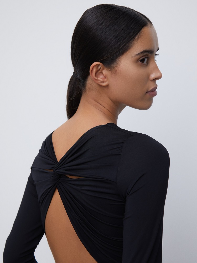 Закрытое боди с длинным рукавом без труда создаст образ для вечера благодаря глубокому вырезу на спине и перекрещенным деталям на уровне плеч. Модель выполнена из тонкой струящейся ткани с высоким содержанием вискозы, продублирована подкладкой по переду и застежкой на кнопки.Сделано в Беларуси.