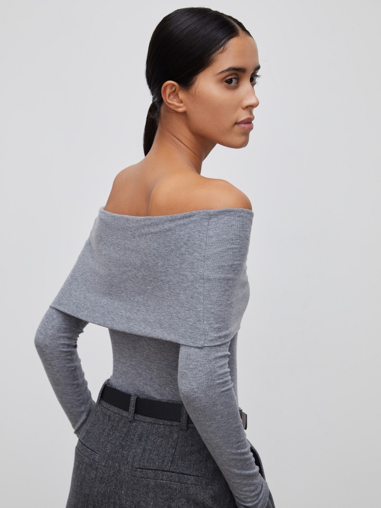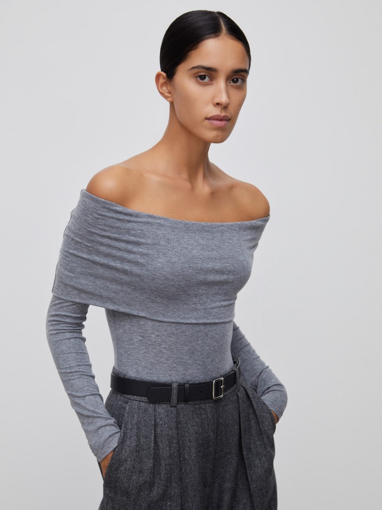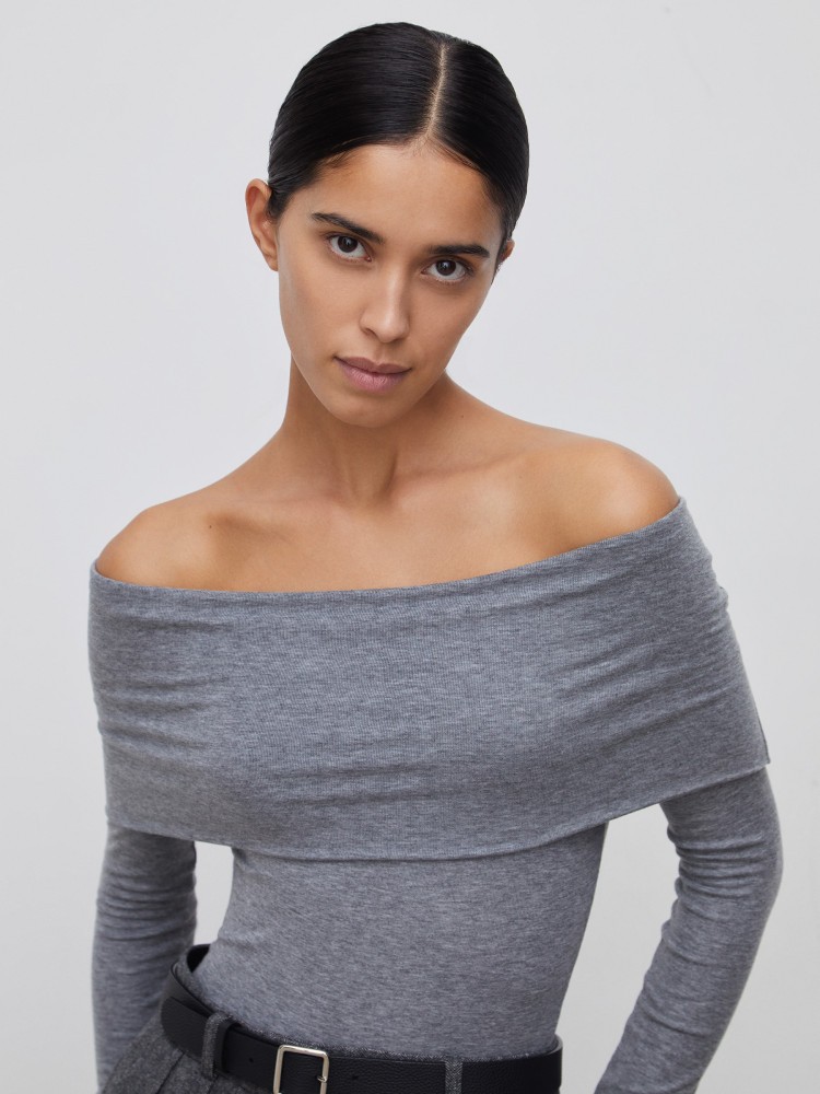 Боди с длинным рукавом облегает силуэт, как тонкая водолазка, при этом открытые плечи придают модели вовсе не будничный вид. Высоту отворота можно регулировать, а на ластовице предусмотрена удобная застежка на кнопки. Нежный к коже трикотаж с содержанием шерсти не подвержен пиллингу и хорошо сохраняет форму. Может просвечивать, рекомендуем подбирать белье в тон.Сделано в Турции.