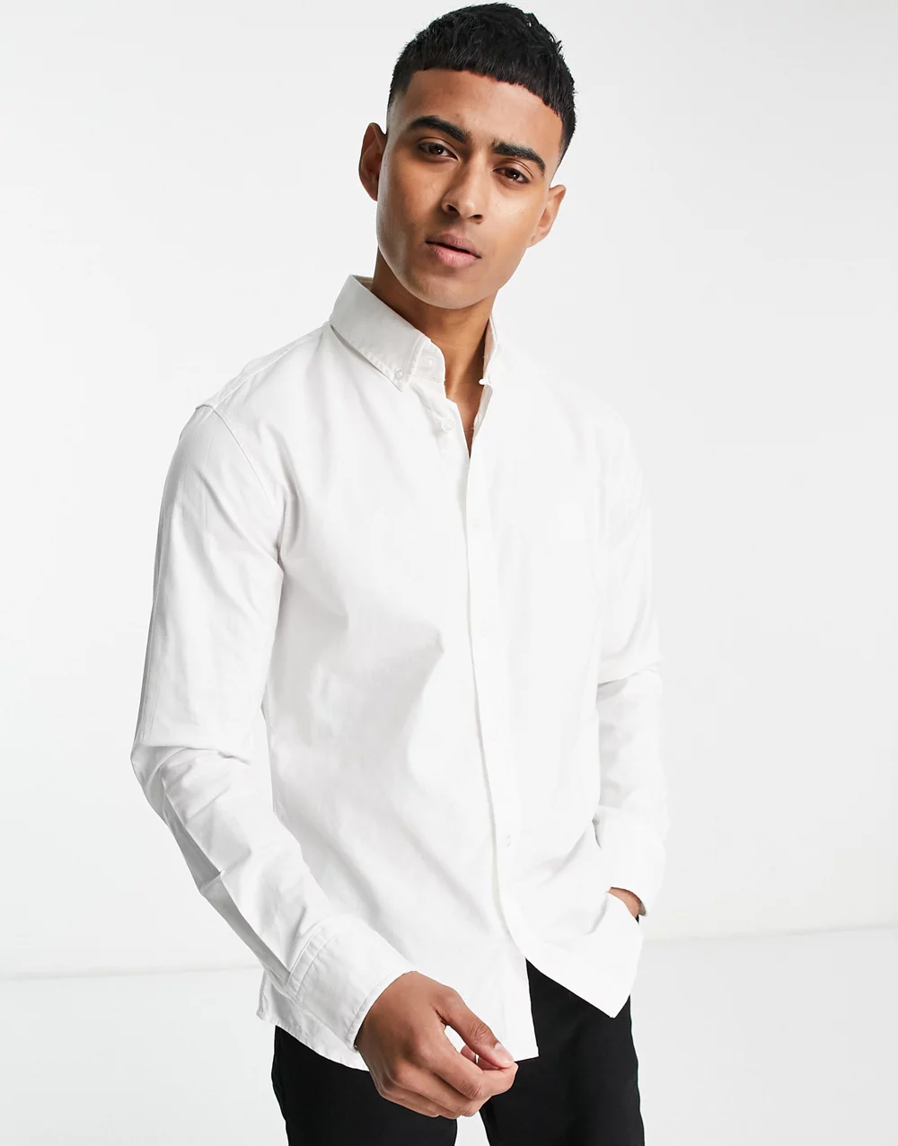 Tommy Jeans cotton flag logo dobby oxford shirt in mid blue