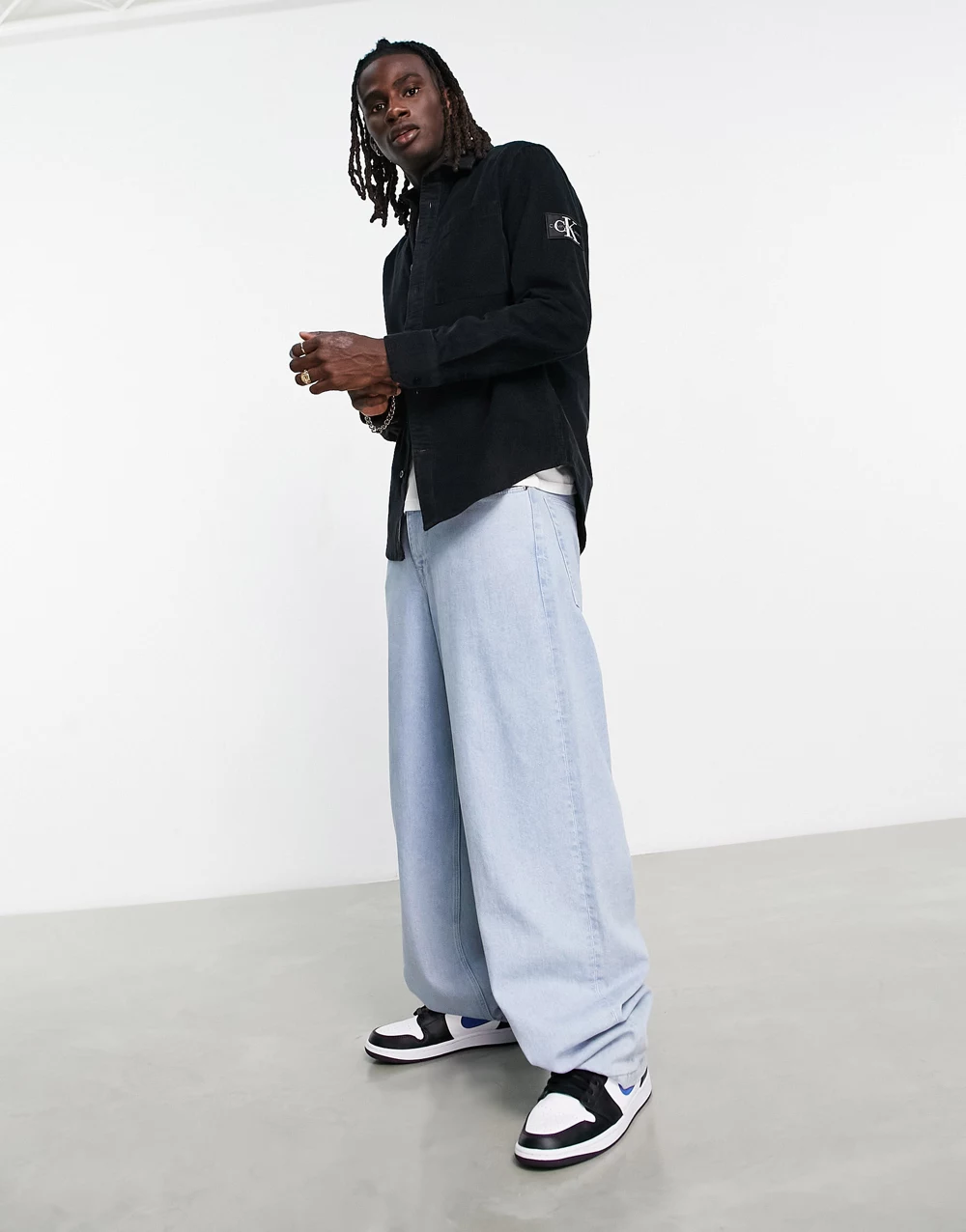 Calvin Klein Jeans mixed media ripstop trousers in stone
