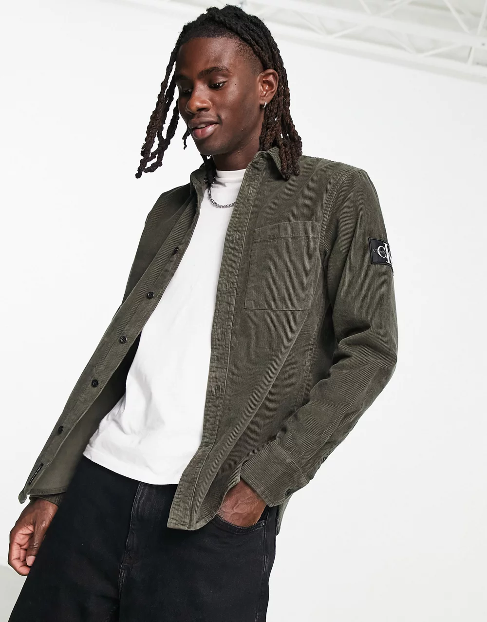 Calvin Klein Jeans monologo badge corduroy shirt in camel