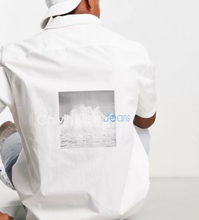 Calvin Klein Jeans splash photoprint back print short sleeve shirt in black