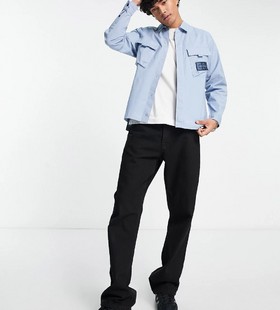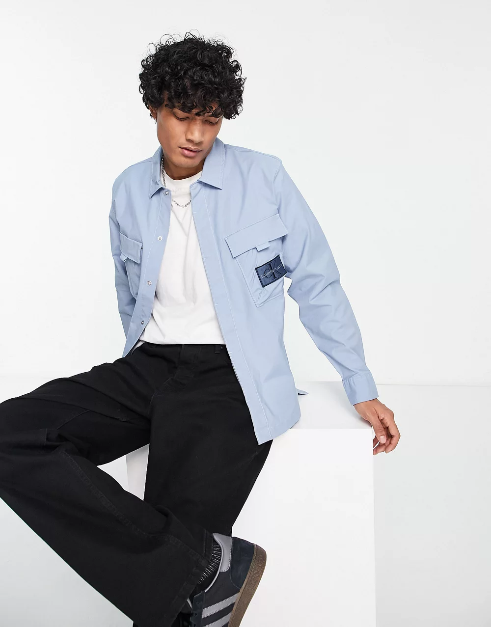 Calvin Klein Jeans badge logo shadow check overshirt in light grey