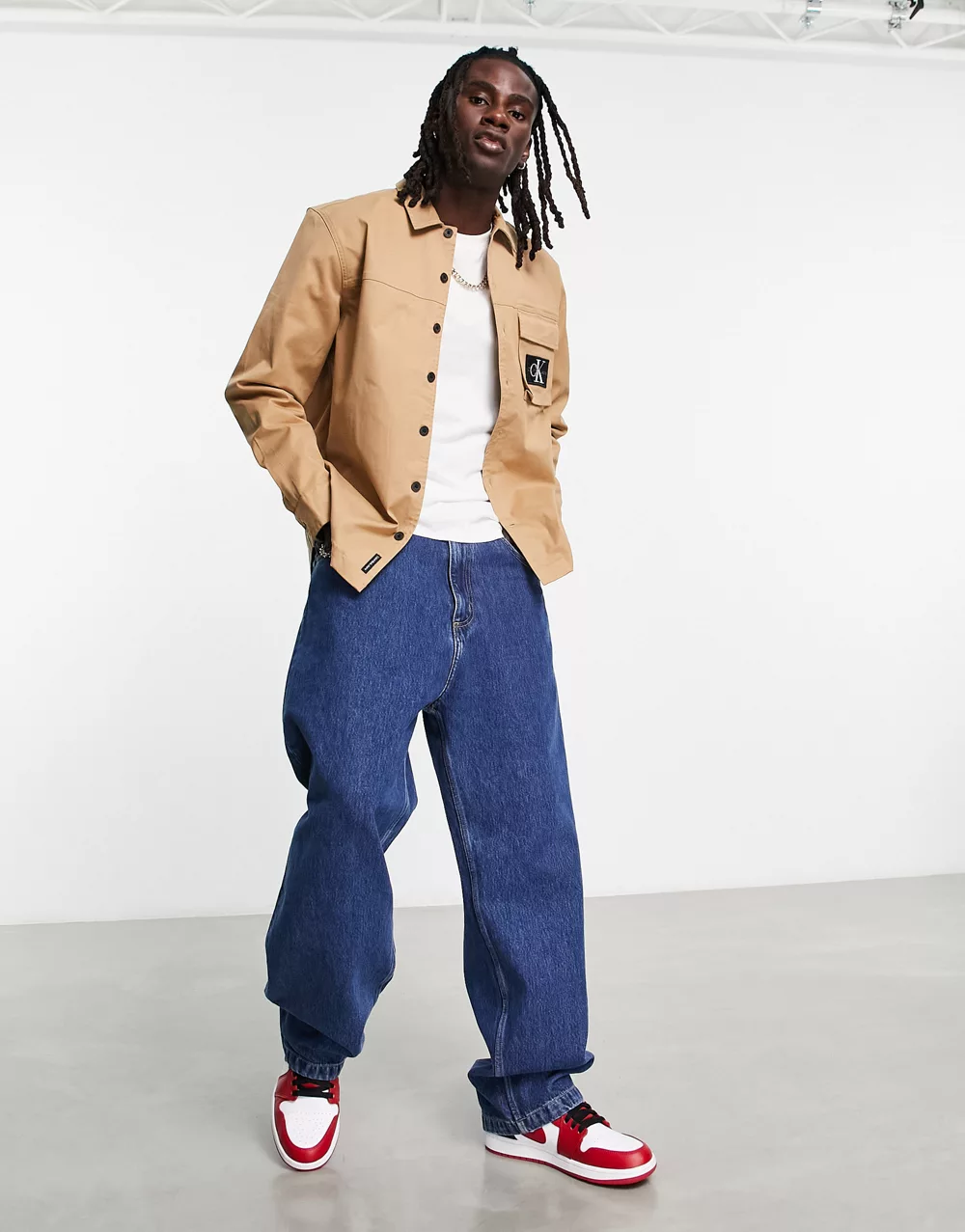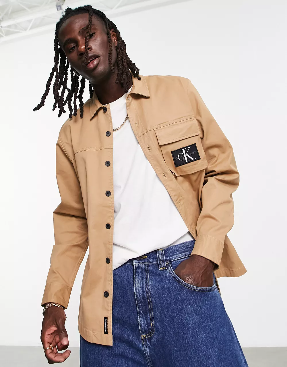 Calvin Klein Jeans monogram chest logo slim fit t-shirt in tan